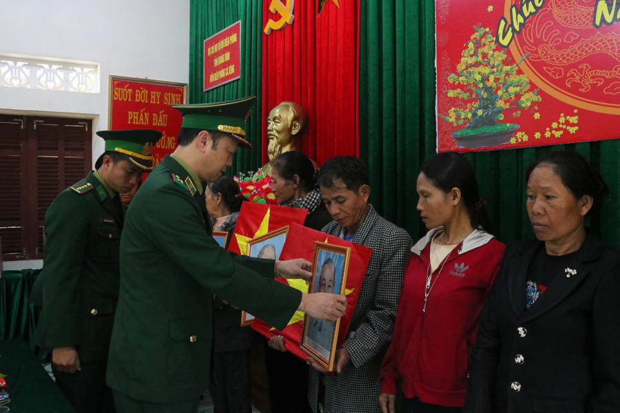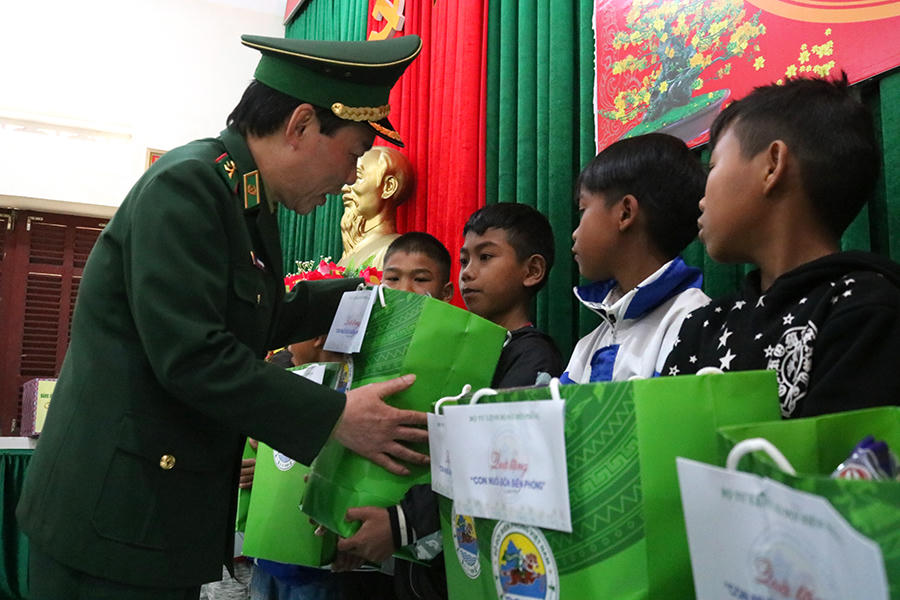 Cụ thể, Đoàn công tác đã trao 4 suất quà cho đại diện lãnh đạo 4 xã miền núi biên giới gồm Trọng Hóa, Dân Hóa, Thượng Hóa và Hóa Sơn; tặng cờ Tổ quốc, ảnh Bác Hồ và quà cho 20 hộ gia đình chính sách, hộ nghèo trên địa bàn huyện Minh Hóa; tặng quà Tết cho 9 cháu học sinh hiện đang là “Con nuôi Biên phòng” tại các đồn Biên phòng.