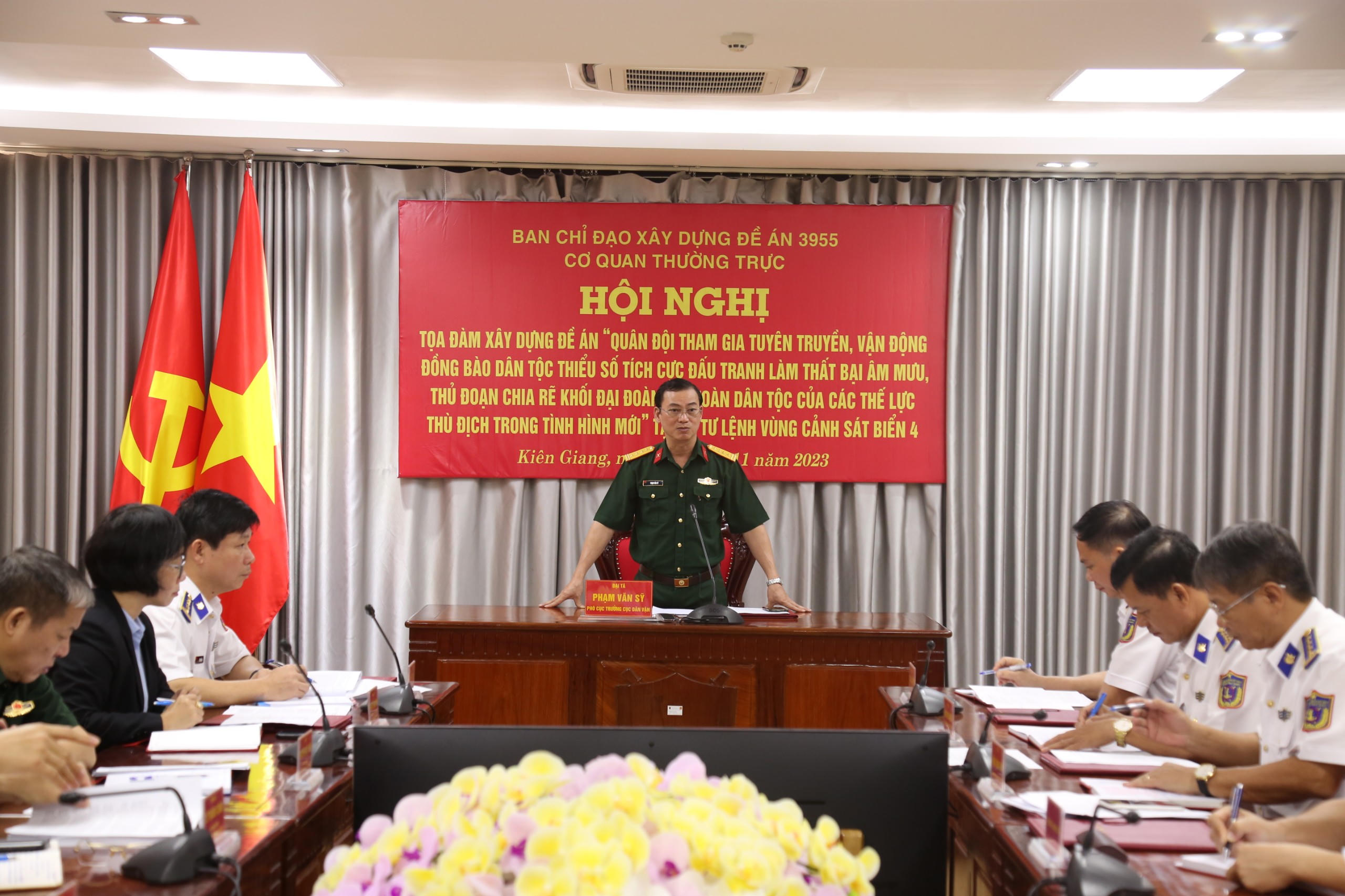 (PLVN) - Sáng ngày 23/11, Đoàn Khảo sát Ban Chỉ đạo xây dựng Đề án “Quân đội tham gia tuyên truyền, vận động đồng bào dân tộc thiểu số tích cực đấu tranh làm thất bại âm mưu, thủ đoạn chia rẽ khối đại đoàn kết toàn dân tộc của các thế lực thù địch trong tình hình mới”, tổ chức tọa đàm xây dựng Đề án tại Bộ Tư lệnh (BTL) Vùng Cảnh sát biển 4.