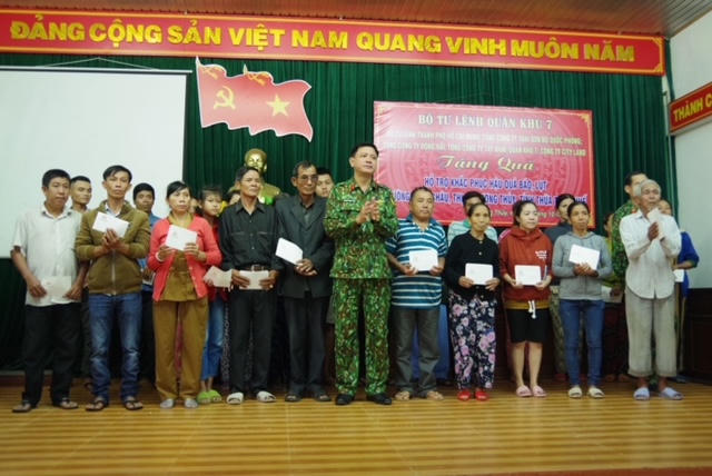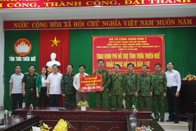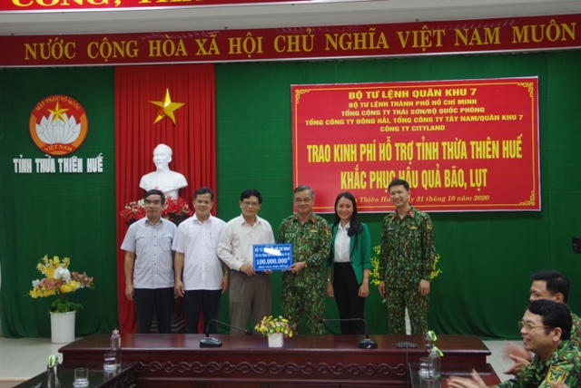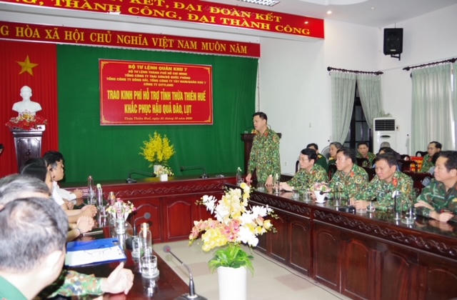 Nhằm kịp thời san sẻ với những khó khăn, thiệt hại nặng nề do bão, lụt gây ra trên địa bàn tỉnh, Quân khu 7 quyết định hỗ trợ tỉnh Thừa Thiên Huế 500 triệu đồng, hỗ trợ Bộ Chỉ huy quân sự tỉnh 300 triệu đồng.