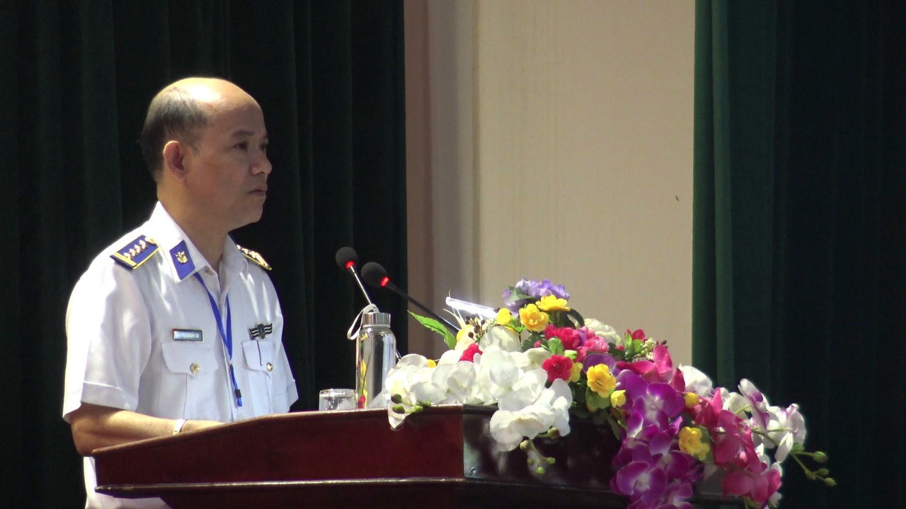 Đại tá Nguyễn Văn Tân, Phó tư lệnh Quân sự Vùng Cảnh sát biển 2 phát biểu tại khai mạc hội thi |