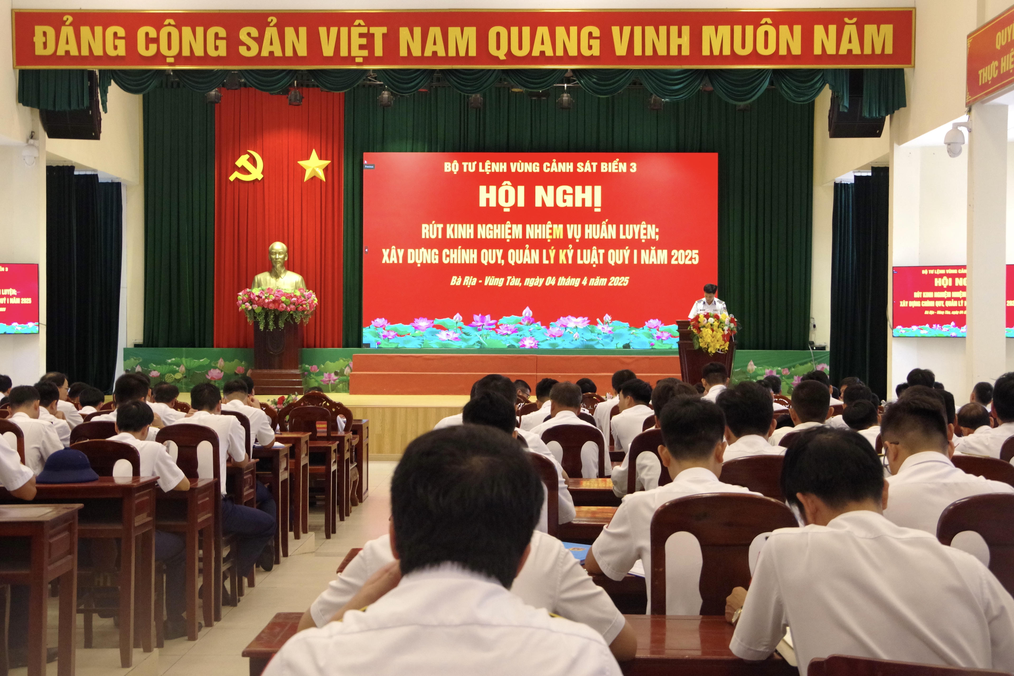 (PLVN) -Chiều 4/4, tại TP Vũng Tàu (tỉnh Bà Rịa - Vũng Tàu), Bộ Tư lệnh Vùng Cảnh sát biển 3 tổ chức Hội nghị rút kinh nghiệm công tác huấn luyện, xây dựng chính quy, chấp hành kỷ luật và bảo đảm vật chất, thao trường, trường bắn trong Quý I năm 2025.