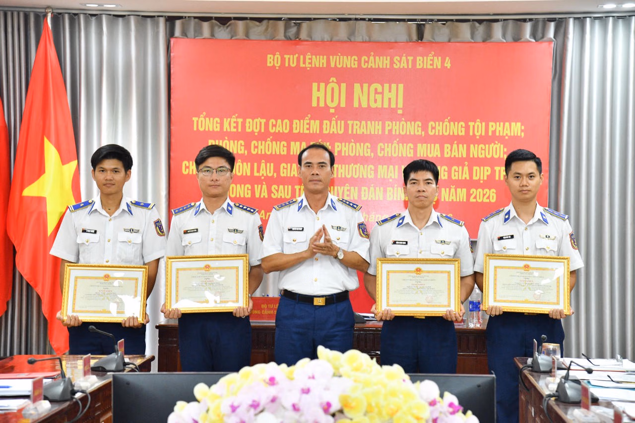Tại Hội nghị, Bộ Tư lệnh Vùng Cảnh sát biển 4 đã trao Giấy khen cho 5 tập thể và 12 cá nhân có thành tích tốt trong Đợt cao điểm.