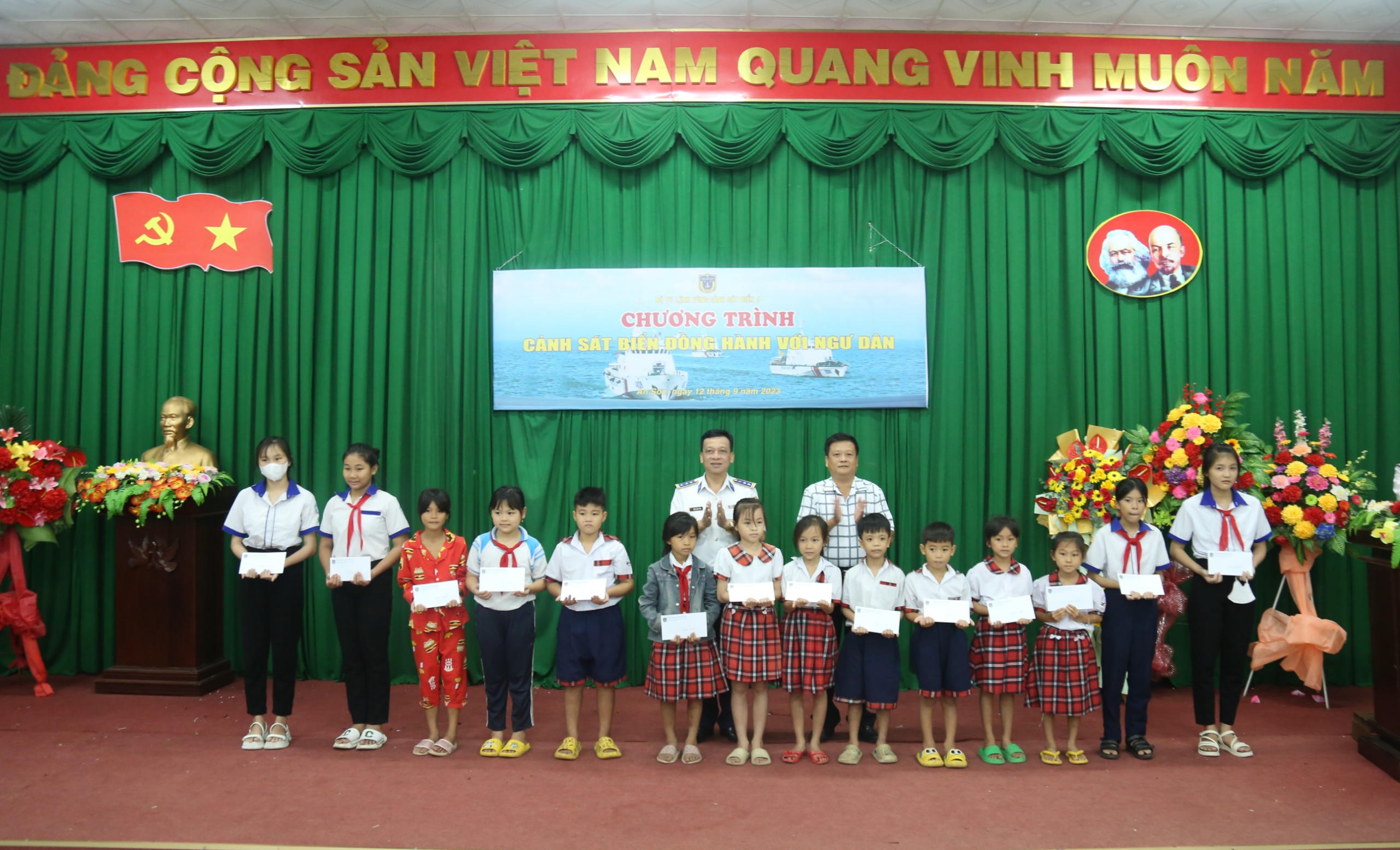 Dịp này, BTL Vùng Cảnh sát biển 4 đã tiến hành trao tặng 20 suất quà hỗ trợ, giúp đỡ các gia đình chính sách, ngư dân có hoàn cảnh khó khăn; tặng 15 suất quà cho các em học sinh nghèo học giỏi và nhận đỡ đầu 3 em học sinh nghèo vượt khó, học giỏi tiêu biểu với số tiền 9 triệu đồng/em. Trao tặng 200 lá cờ Tổ quốc, 20 túi thuốc y tế cứu thương cho các tàu cá, ngư dân trên địa bàn.