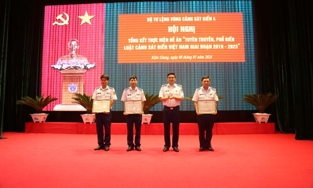 Dịp này, BTL Vùng Cảnh sát biển 4 trao thưởng cho 04 tập thể và 09 cá nhân có thành tích tốt qua 05 năm thực hiện Đề án.
