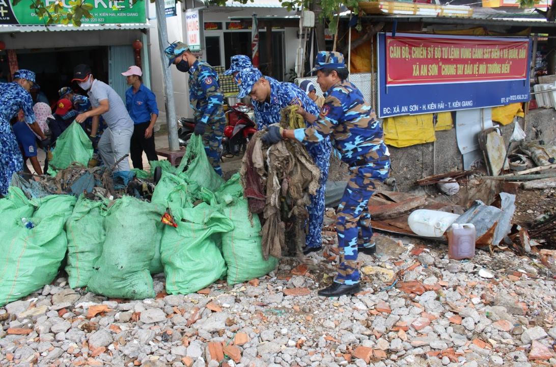 Theo đó, trong ngày 04/6/2020, Đoàn thanh niên của BTL Vùng Phối hợp với xã đoàn An Sơn, đồn Biên phòng Nam Du, Trạm Radr 600 (BTL Vùng 5 Hải quân) tiến hành dọn vệ sinh môi trường biển tại khu vực cảng cá An Sơn và Bãi Ngữ với sự tham gia của gần 100 cán bộ, chiến sĩ, đoàn viên thanh niên, thu gom hàng chục tấn rác thải về tập kết đúng nơi quy định.