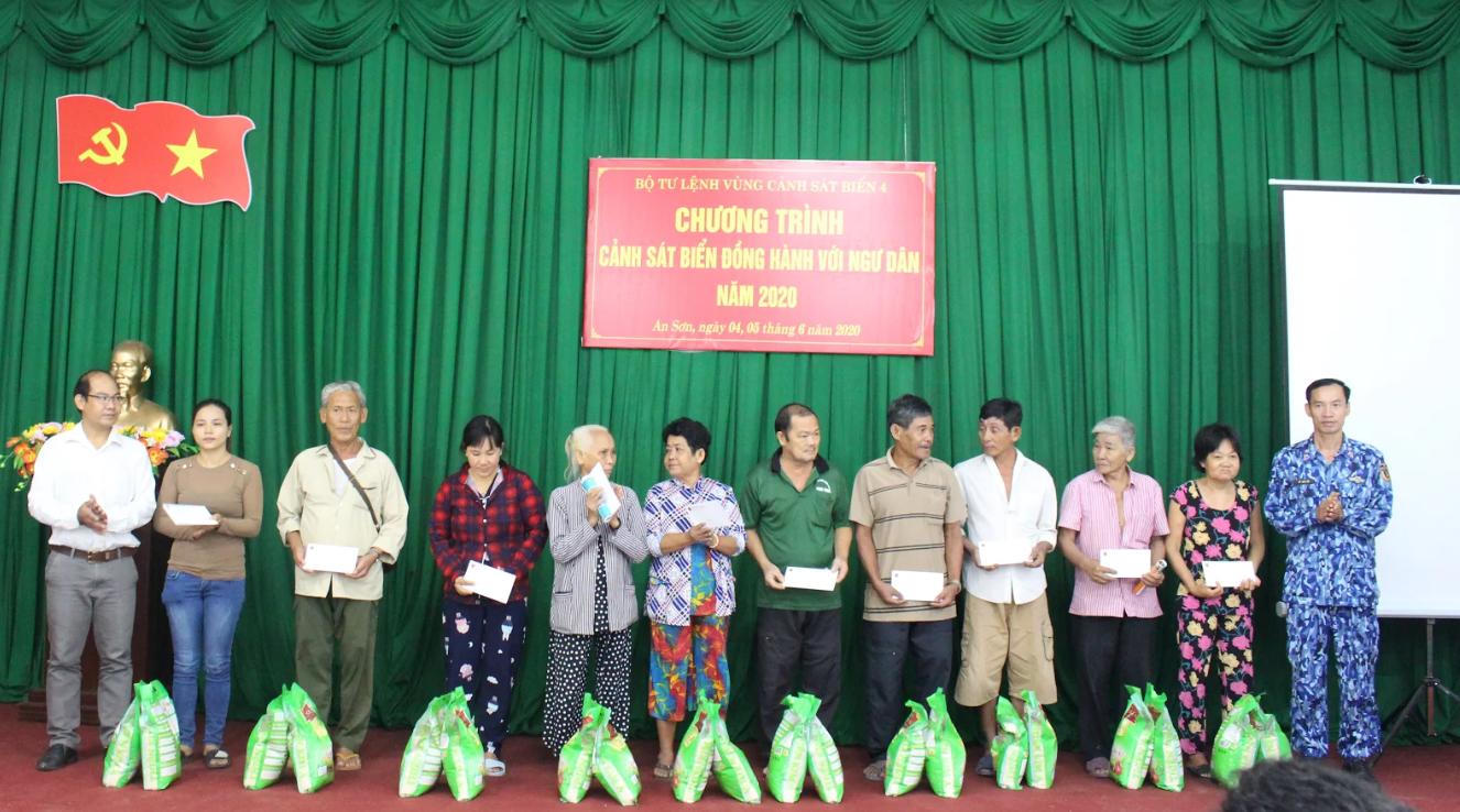 Tại đây, BTL Vùng đã trao tặng 10 suất quà, mỗi suất trị giá 500.000 đồng (gồm 10 kg gạo, 01 hộp khẩu trang y tế và 300.000 đồng) cho ngư dân nghèo, gia đình chính sách trên đảo; 10 suất quà trị giá 500.000 đồng/ 1 suất cho 10 cháu học sinh nghèo vượt khó; trao học bổng cho 03 cháu học sinh có hoàn cảnh khó khăn trị giá 1.500.000 đồng/ 1 cháu (đơn vị nhận đỡ đầu 03 cháu với mức 500.000 đồng/cháu/tháng); trao tặng 10 phiếu mổ mắt miễn phí trị giá 15.000.000/1 phiếu/1 ca mổ.