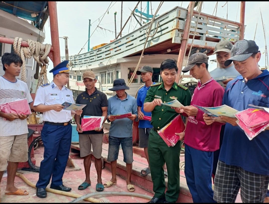 BTL Vùng Cảnh sát biển 4 phối hợp tuyên truyền, phổ biến pháp luật cho ngư dân tại cảng cá Trần Đề, huyện Trần Đề. |