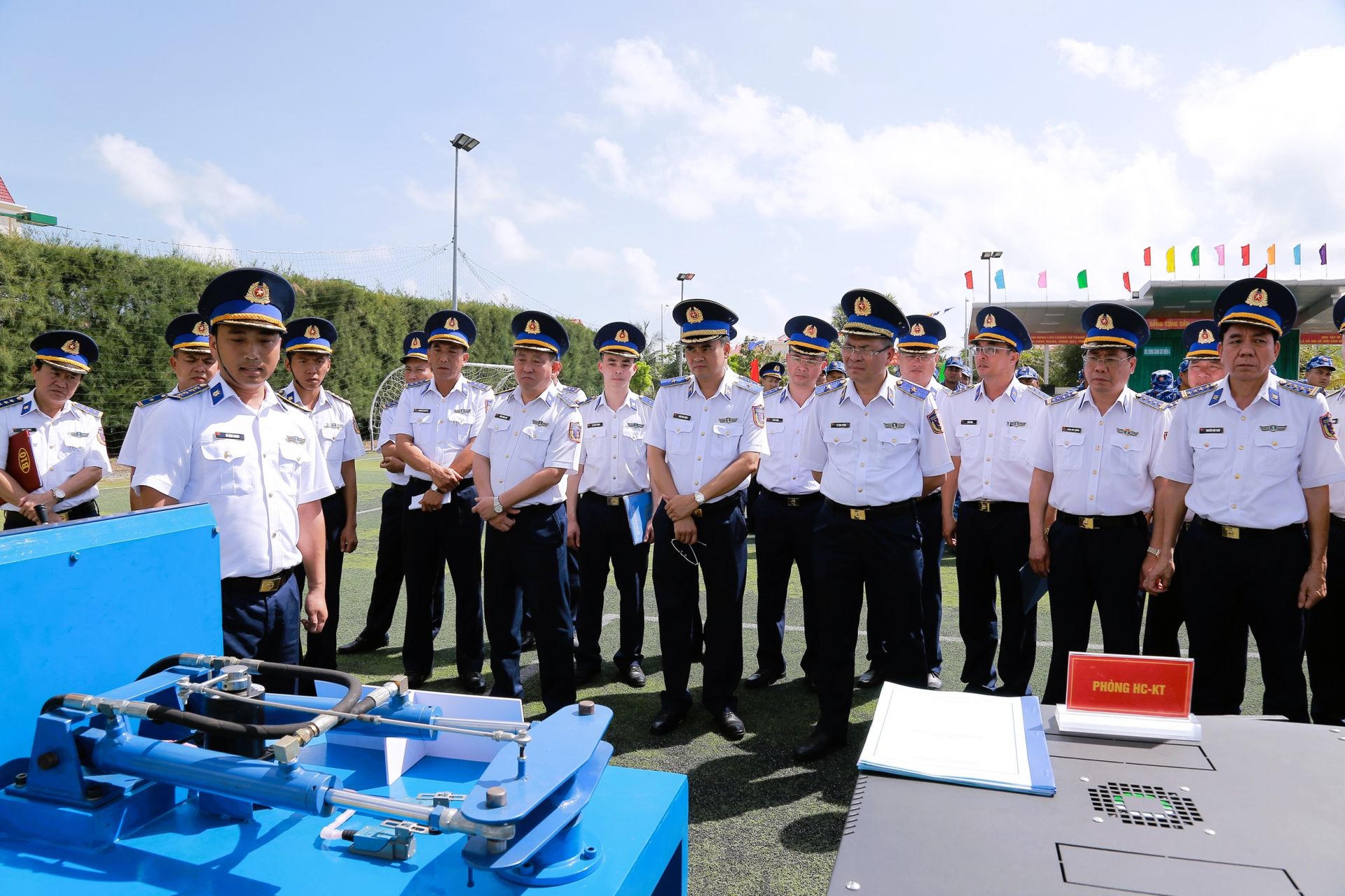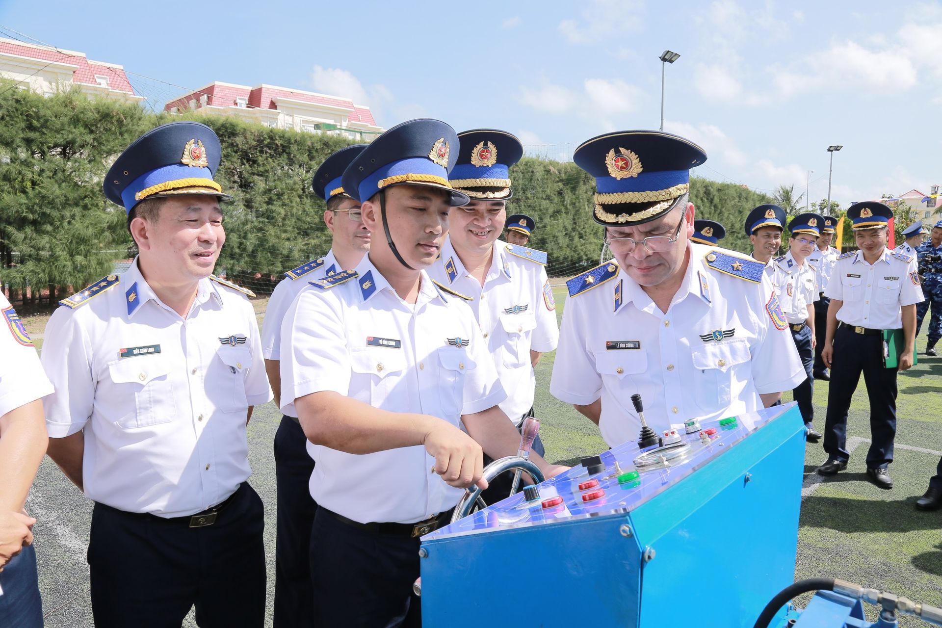 Thiếu tướng Lê Đình Cường - Phó Tư lệnh, Tham mưu trưởng Cảnh sát Biển Việt Nam tham quan các mô hình học cụ của Bộ Tư lệnh Vùng Cảnh sát Biển 4. |