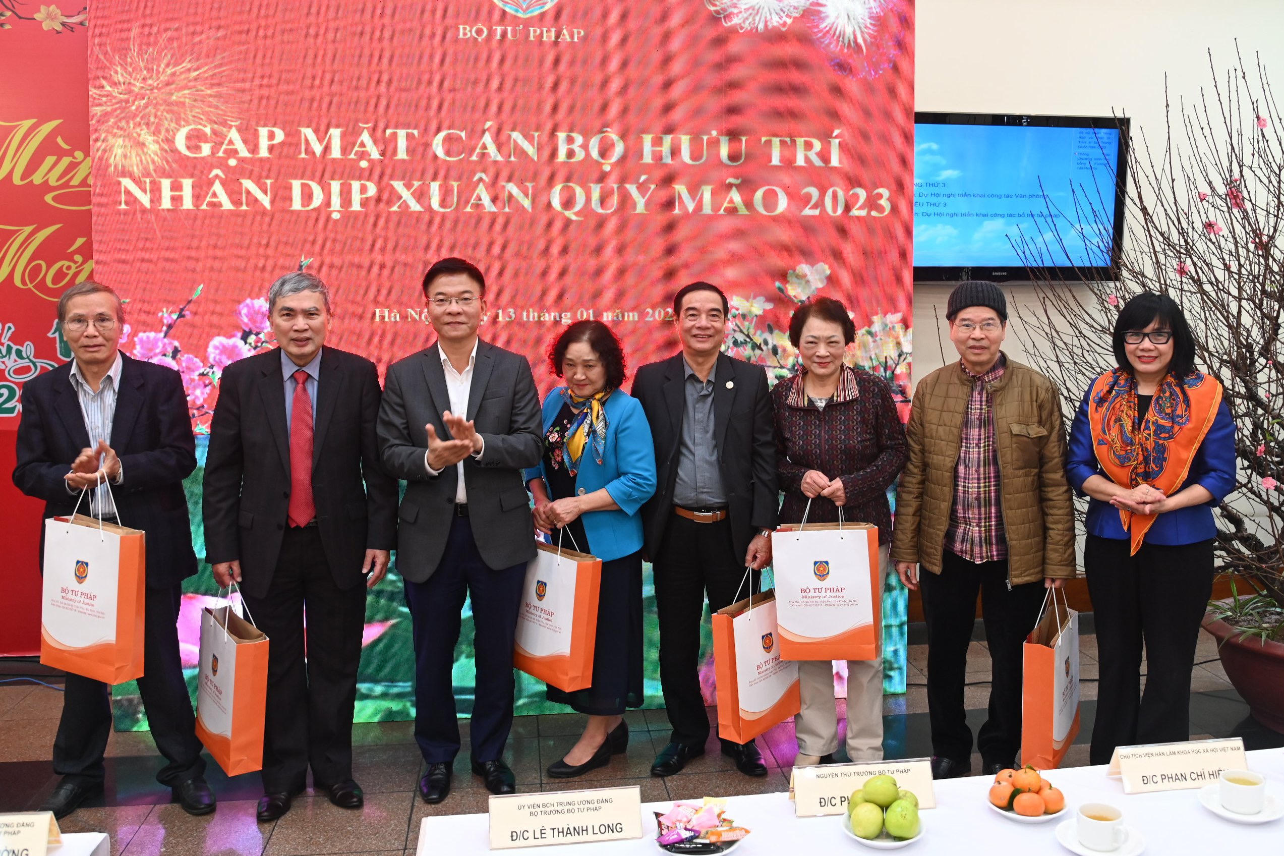 Trong không khí thân mật, đầm ấm đầy ý nghĩa, thay mặt Ban Cán sự, lãnh đạo Bộ và tập thể cán bộ, công chức, viên chức Bộ Tư pháp, Bộ trưởng Lê Thành Long kính chúc toàn thể cán bộ hưu trí luôn dồi dào sức khỏe, là chỗ dựa vững chắc về tinh thần và tiếp tục đóng góp trí tuệ, kinh nghiệm của mình cho sự phát triển của ngành Tư pháp.