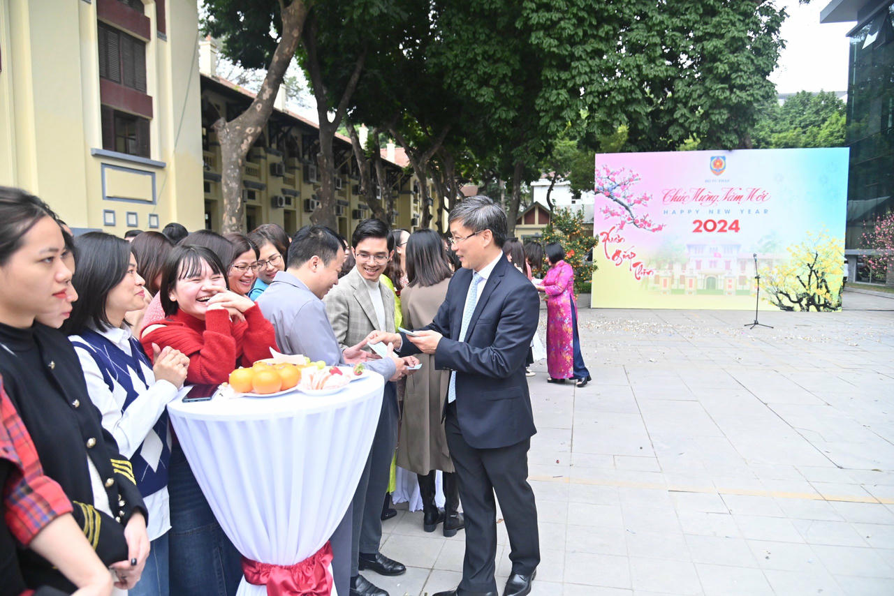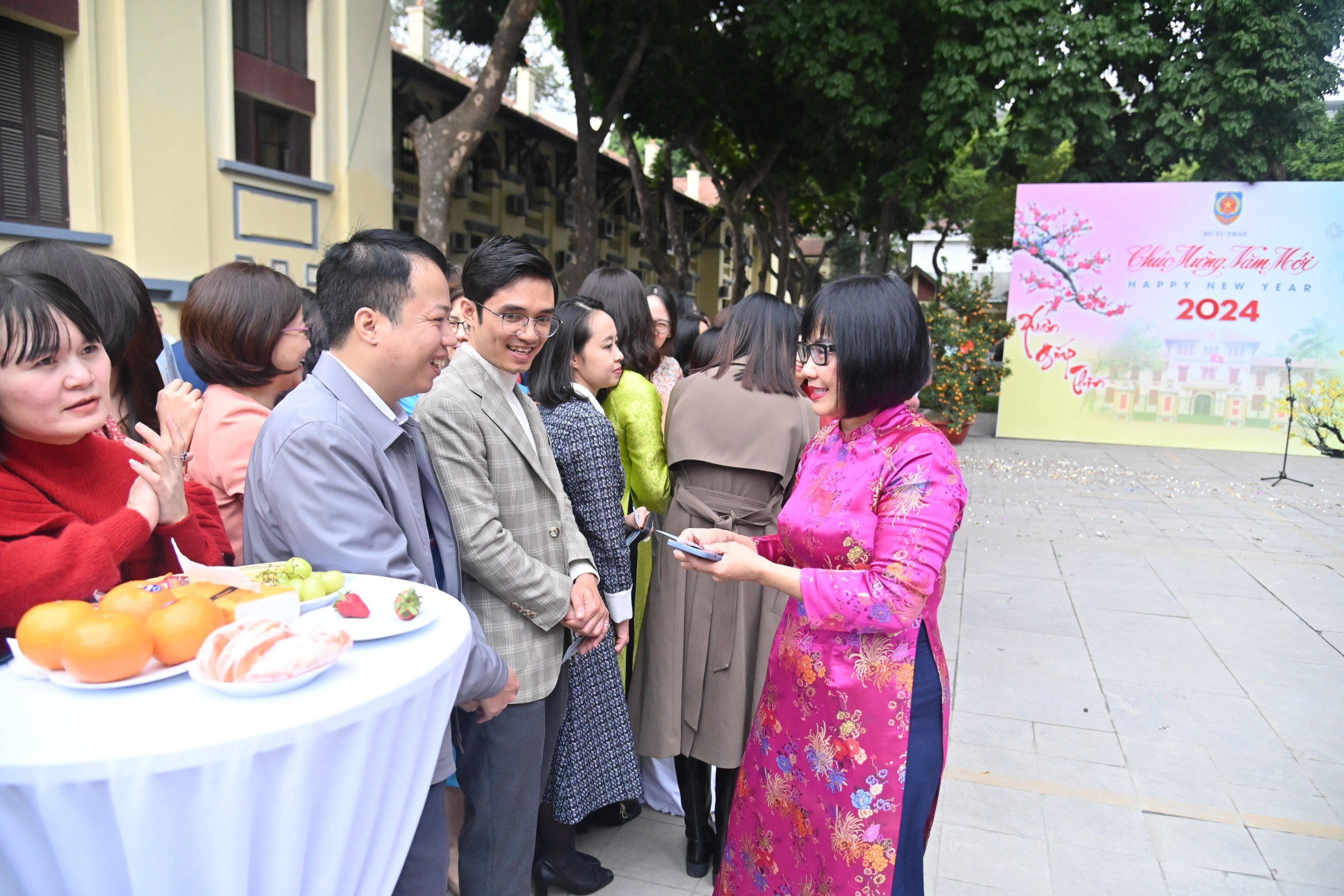 (PLVN) -Ngày 15/02 (ngày 06/01 Tết Âm lịch) - ngày làm việc đầu tiên của năm Giáp Thìn, Bộ trưởng Bộ Tư pháp Lê Thành Long cùng các Thứ trưởng: Nguyễn Khánh Ngọc, Đặng Hoàng Oanh, Mai Lương Khôi, Nguyễn Thanh Tịnh, Trần Tiến Dũng đã gặp và chúc tết đầu xuân các cán bộ, công chức, viên chức và người lao động Bộ Tư pháp.