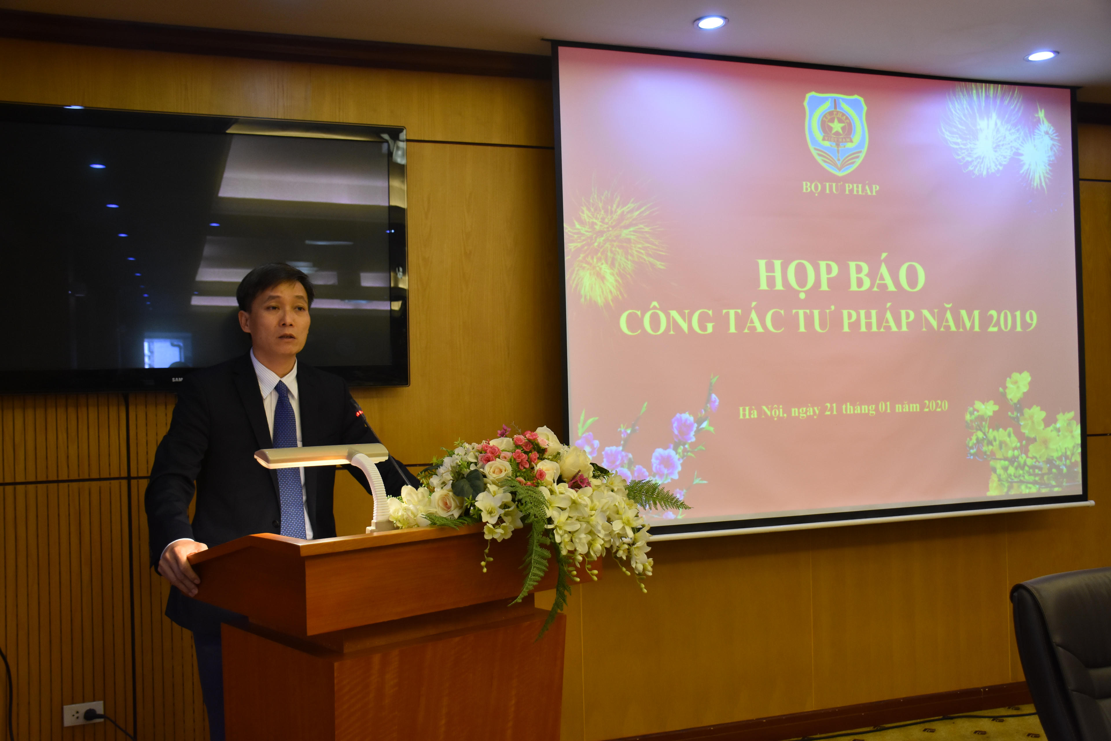 Phát biểu chào mừng các nhà báo tham dự buổi họp báo, Thứ trưởng Nguyễn Khánh Ngọc nhấn mạnh, công tác Tư pháp những năm qua và năm 2019 luôn nhận được quan tâm lãnh đạo, chỉ đạo của các cấp ủy Đảng, chính quyền, của các bộ, ngành và của người dân, doanh nghiệp, trong đó có các cơ quan báo chí, truyền thông.