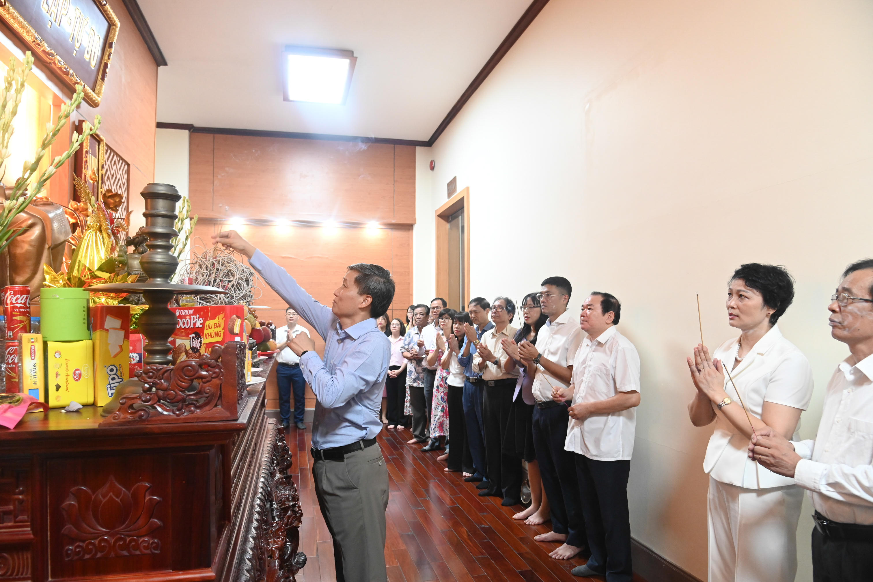 Trước đó, Lãnh đạo Bộ cùng các cán bộ, công chức, viên chức, người lao động tham dự buổi gặp mặt đã dâng hương tại Phòng Truyền thống Bộ Tư pháp: