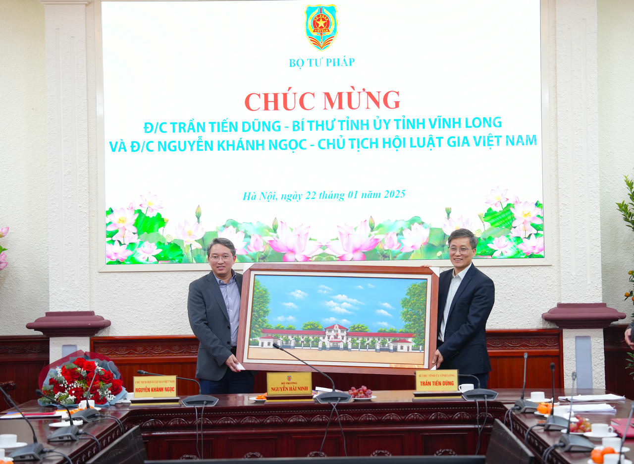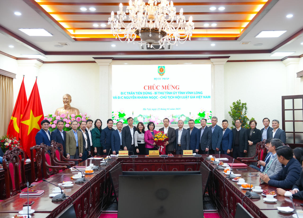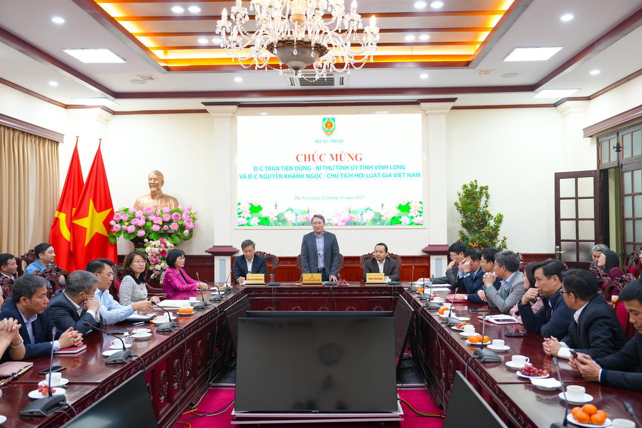Với khả năng, điều kiện của mình, Bộ, ngành Tư pháp sẵn sàng chia sẻ cùng các đồng chí công việc chung của Hội Luật gia Việt Nam, của tỉnh Vĩnh Long cũng như của cá nhân các đồng chí. Bộ trưởng cũng chúc hai đồng chí ở cương vị mới, tiếp tục hoàn thành xuất sắc nhiệm vụ mà Đảng, Nhà nước giao phó.
