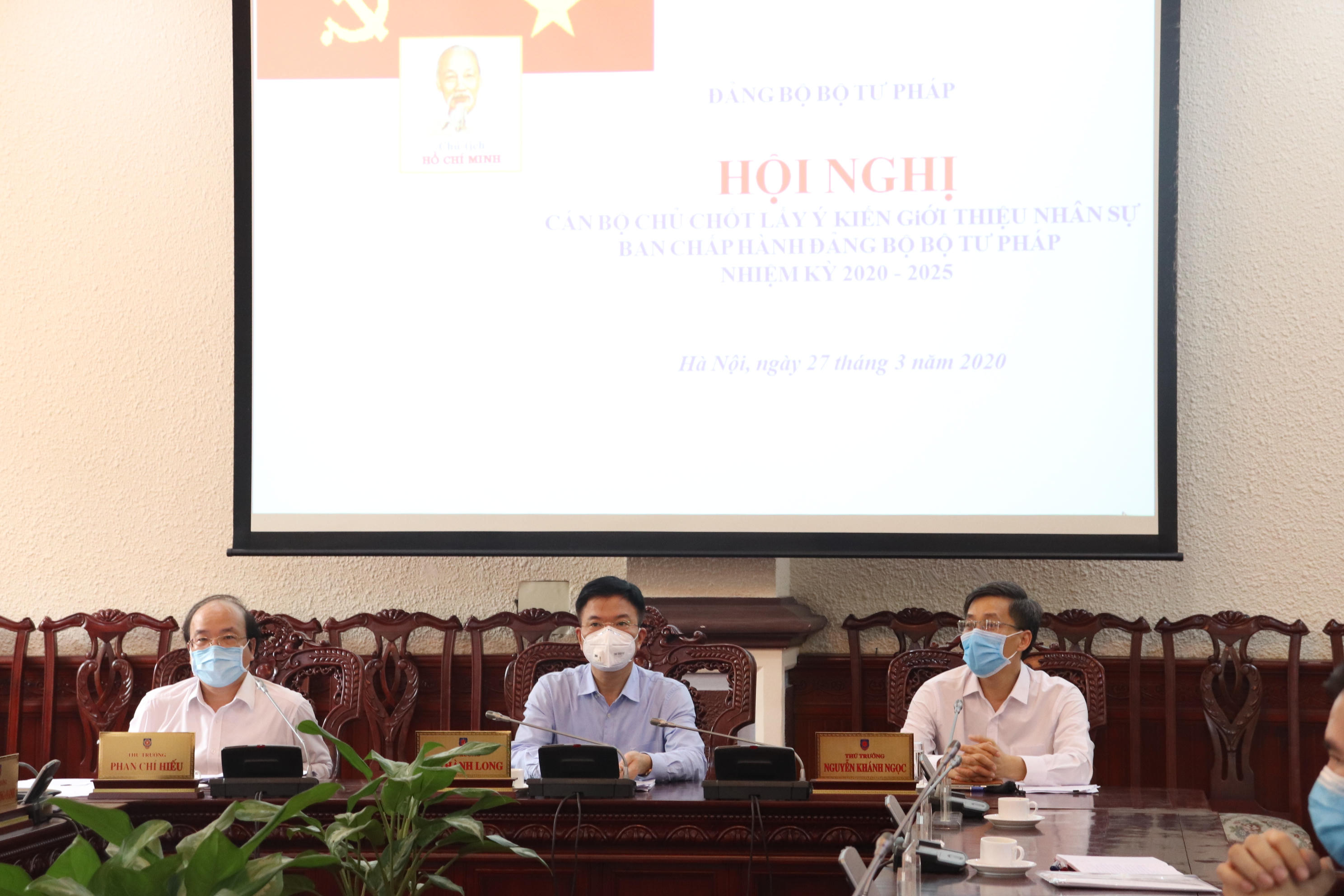 Tiếp đó, thực hiện Chỉ thị số 35-CT/TW ngày 30/5/2019 của Bộ Chính trị về Đại hội Đảng bộ các cấp tiến tới Đại hội đại biểu toàn quốc lần thứ XIII của Đảng; Kế hoạch số 155-KH/ĐUK ngày 10/10/2019 của Đảng ủy Khối các cơ quan Trung ương về kế hoạch Đại hội đảng bộ các cấp trong Đảng bộ Khối các cơ quan Trung ương tiến tới Đại hội đại biểu toàn quốc lần thứ XIII của Đảng, Đảng ủy Bộ Tư pháp đã tổ chức Hội nghị cán bộ chủ chốt để lấy ý kiến giới thiệu nhân sự tham gia BCH Đảng bộ Bộ Tư pháp nhiệm kỳ 2020-2025.