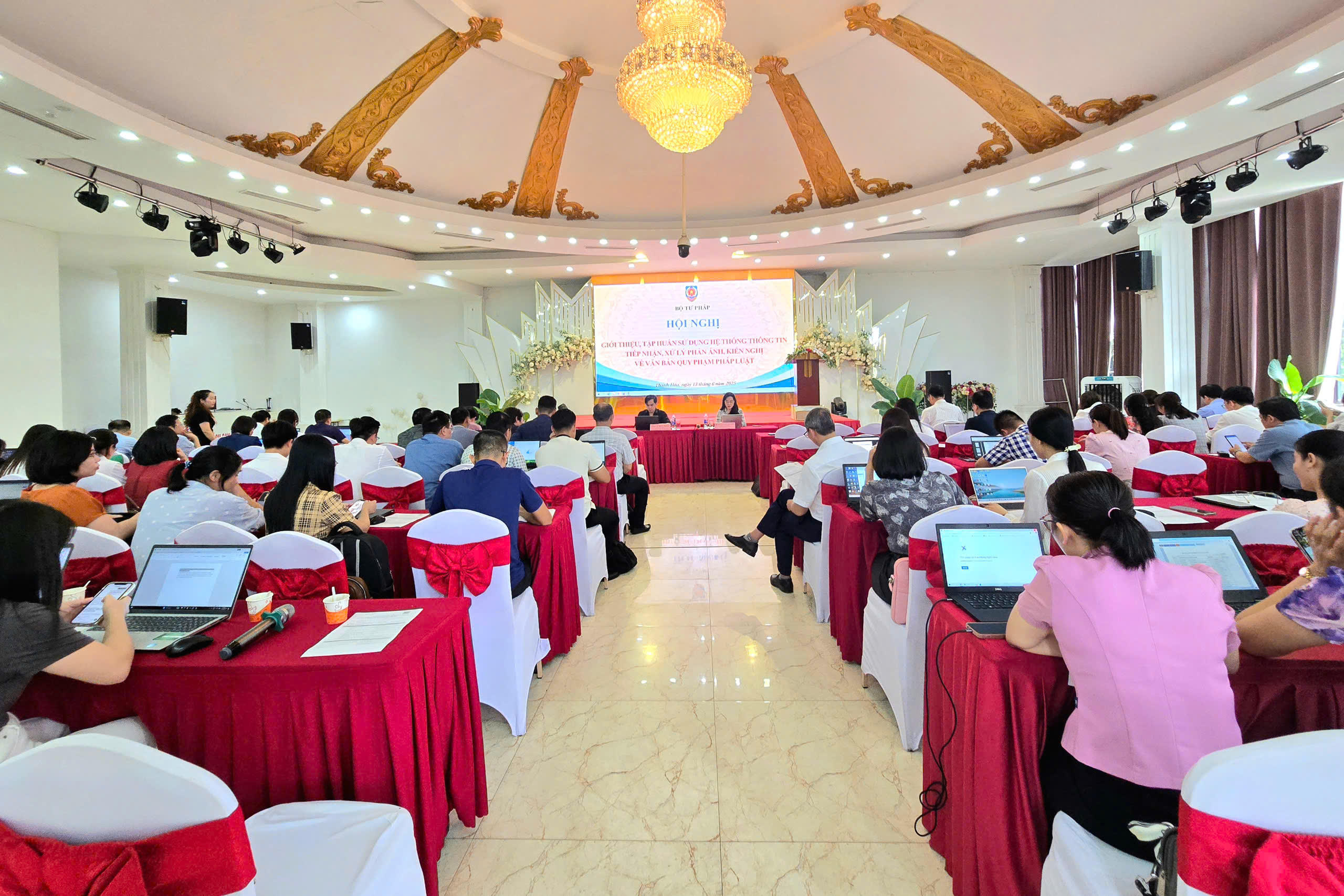 (PLVN) - Chiều 13/6, tại thành phố Thanh Hóa, Bộ Tư pháp tổ chức Hội nghị giới thiệu, tập huấn sử dụng Hệ thống thông tin tiếp nhận, xử lý phản ánh, kiến nghị về văn bản quy phạm pháp luật (VBQPPL) cho đại diện Sở Tư pháp và các cơ quan, tổ chức có liên quan thuộc Ủy ban nhân dân các tỉnh, thành phố trực thuộc Trung ương.