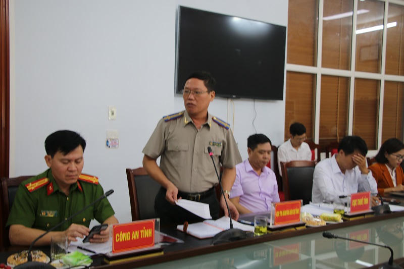 Đại diện lãnh đạo Cục THADS tỉnh Điện Biên thông tin về tình hình thực hiện công tác bồi thường Nhà nước trong ngành THADS. |