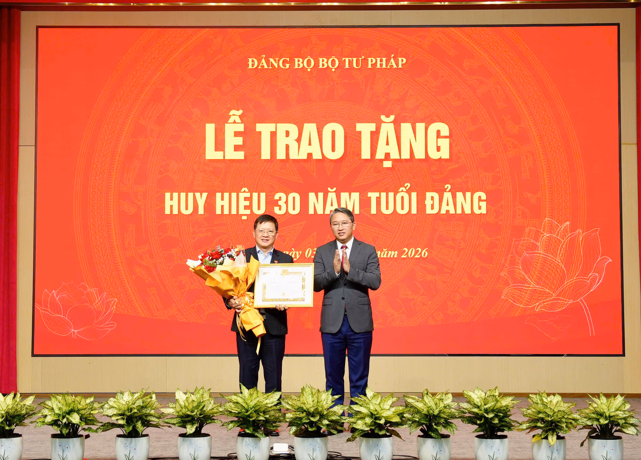 Nhân dịp này, Bộ trưởng Bộ Tư pháp Nguyễn Hải Ninh đã trao Huy hiệu 30 năm tuổi Đảng; Bằng khen của Đảng uỷ Chính phủ cho Đảng uỷ Bộ Tư pháp.