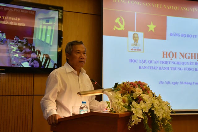 Ông Hà cho rằng, với phạm vi chức năng, nhiệm vụ của mình, các hoạt động của Bộ, ngành Tư pháp liên quan đến luật pháp, thể chế là rất nhiều. Vì vậy, các cán bộ, đảng viên cần nghiên cứu sâu sắc nội dung của các Nghị quyết TƯ 5 khóa XII, đặc biệt là các giải pháp để góp phần thực hiện thắng lợi các Nghị quyết này.
