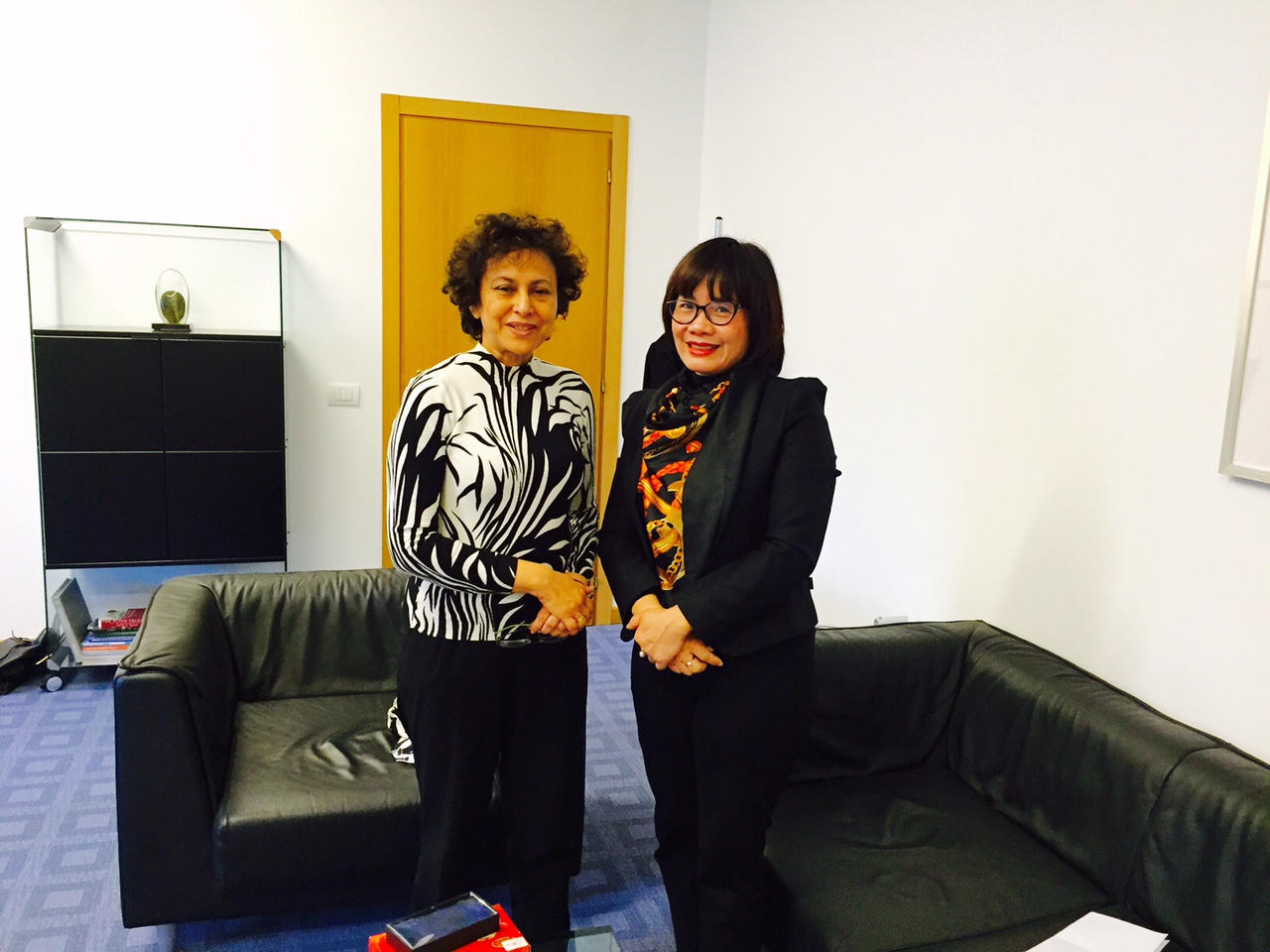 (PLO) - Ngay sau khi tham dự Hội nghị thường niên các quốc gia thành viên của Tổ chức quốc tế về Luật Phát triển (IDLO) và ký Hiệp định gia nhập Tổ chức này, tại Rome, thủ đô Cộng hòa Italia, bà Đặng Hoàng Oanh, Vụ trưởng Vụ Hợp tác quốc tế Bộ Tư pháp Việt Nam đã có buổi làm việc với Tổng giám đốc Tổ chức IDLO để thảo luận về chương trình hợp tác cụ thể với Việt Nam và các nước khu vực ASEAN trong thời gian tới.