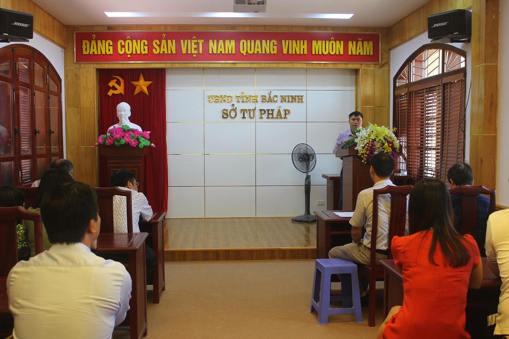 | Lãnh đạo Sở Tư pháp Bắc Ninh giới thiệu về cơ cấu tổ chức và công tác quản lý trong thực tiễn của đơn vị |