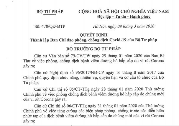 Bộ Tư pháp sẵn sàng ứng phó với 3 cấp độ của dịch bệnh Covid-19