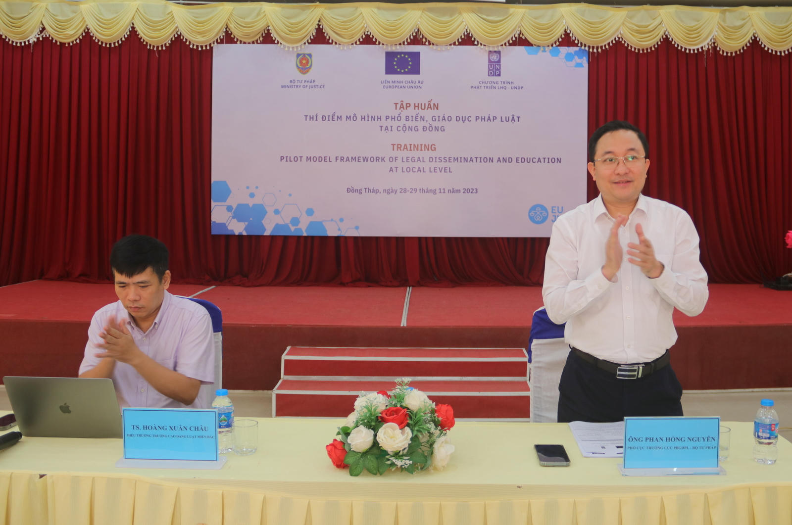 Chính vì vậy, được sự hỗ trợ của UNDP, Cục đã khảo sát tại tỉnh Hòa Bình và Đồng Tháp về thực trạng công tác PBGDPL, nhu cầu và xác định các yếu tố để xây dựng khung mô hình PBGDPL. Trên cơ sở khảo sát, Cục phối hợp với UNDP xây dựng mô hình PBGDPL tại cộng động. Trước đó, Cục đã tổ chức tọa đàm trực tuyến trong giai đoạn đại dịch COVID-19 bùng nổ, nhằm tiếp tục hoàn thiện mô hình. Để triển khai thí điểm mô hình này tại Hòa Bình và Đồng Tháp. Trước đó, Cục cũng đã tổ chức Hội nghị tập huấn với nội dung tương tự tại Hòa Bình và hôm nay là tổ chức tại Đồng Tháp.