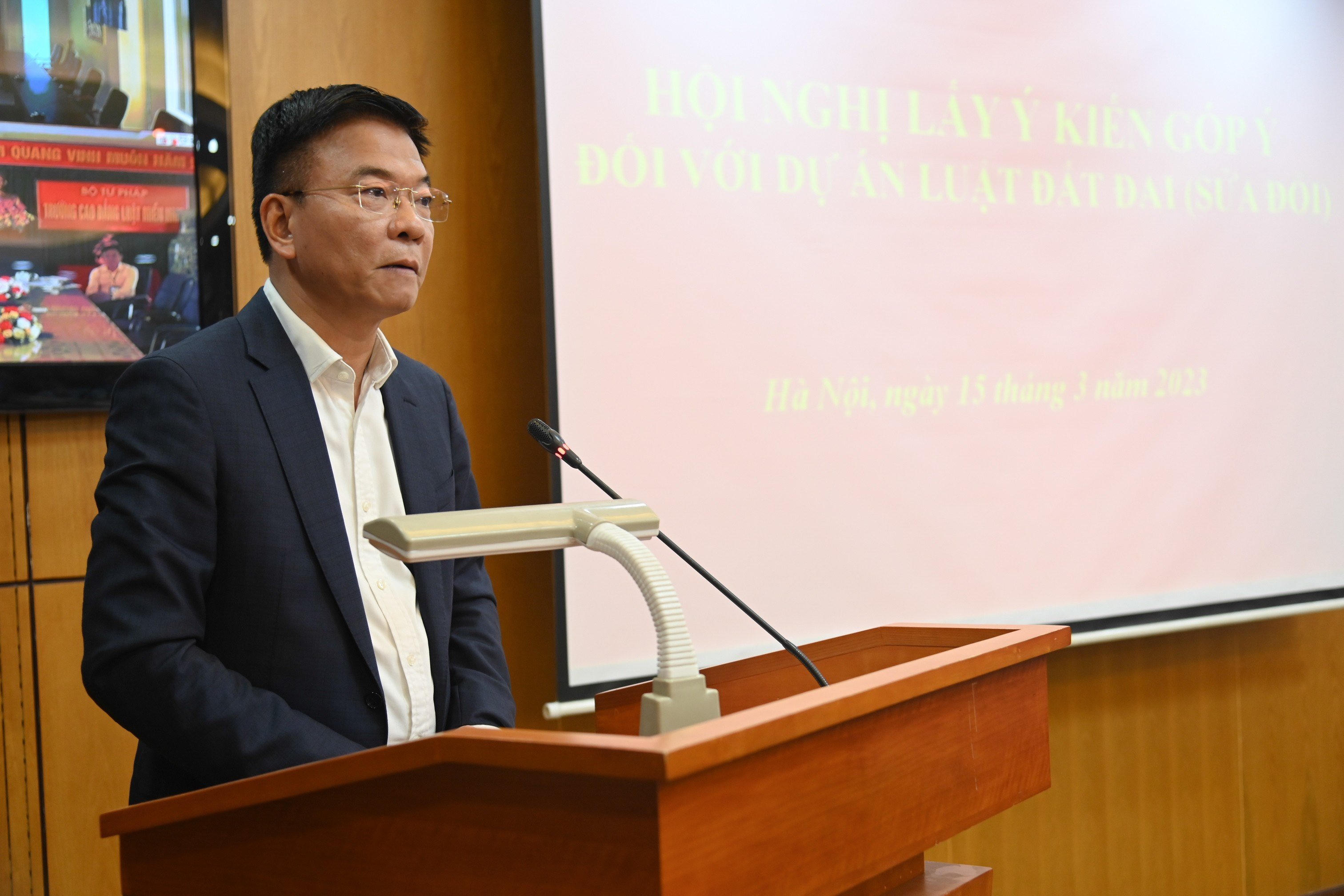Sau khi nghe các ý kiến, Bộ trưởng Lê Thành Long nhấn mạnh đây là Hội nghị có ý nghĩa hết sức quan trọng, Bộ Tư pháp đã tổ chức lấy ý kiến tất cả các đơn vị thuộc Bộ để tổng hợp. Bộ trưởng đánh giá cao các ý kiến góp ý tại Hội nghị với tinh thần, trách nhiệm cao, nội dung khá toàn diện, có trọng tâm, trọng điểm, tập trung vào các vấn đề được gợi ý, thảo luận. Đồng thời đề nghị Vụ Pháp luật Dân sự-kinh tế tiếp tục tham mưu Ban Cán sự Đảng, Lãnh đạo Bộ hoàn chỉnh báo cáo tổng hợp, tiếp thu các ý kiến trên tinh thần bám sát quan điểm của Nghị quyết số 18-NQ/TW ngày 16/6/2022 của Ban Chấp hành Trung ương Đảng khóa XIII tại Hội nghị lần thứ năm về “Tiếp tục đổi mới, hoàn thiện thể chế, chính sách nâng cao hiệu lực, hiệu quả quản lý và sử dụng đất, tạo động lực đưa nước ta trở thành nước phát triển và có thu nhập cao”; các quy định có đầy đủ căn cứ pháp lý, đảm bảo tính đồng bộ của pháp luật.