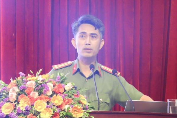 Thượng tá Phạm Văn Sính, Cục An ninh Chính trị nội bộ - Bộ Công an, chia sẻ tại lớp bồi dưỡng. |