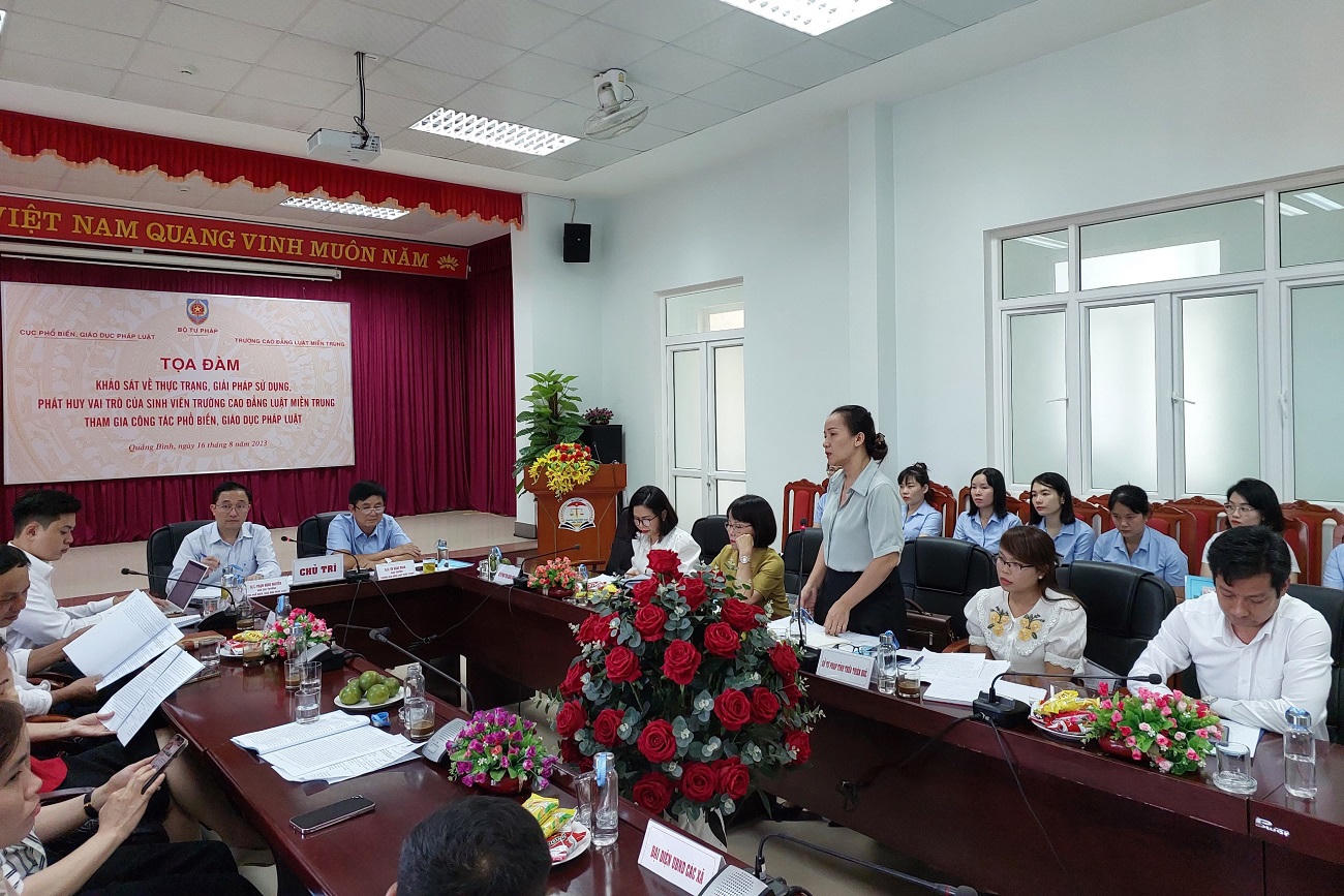 Tham dự buổi Tọa đàm có ông Phan Hồng Nguyên, Phó Cục trưởng Cục PBGDPL, Bộ Tư pháp; ông Võ Khắc Hoan, Hiệu trưởng Trường Cao đẳng Luật miền Trung; đại diện các sở ban, ngành trong tỉnh; Sở Tư pháp các tỉnh Bắc miền Trung và giảng viên, cựu học sinh, sinh viên của Trường.