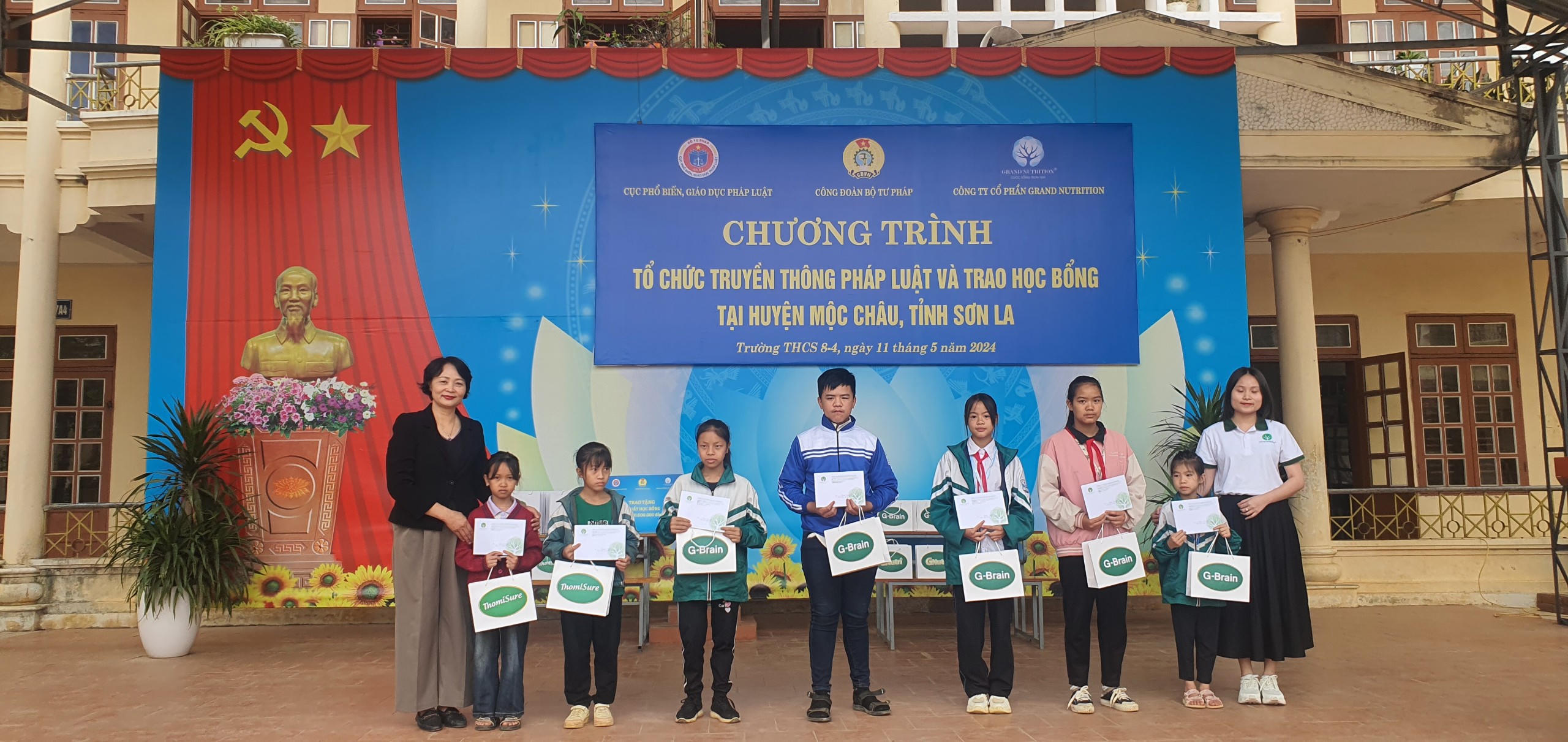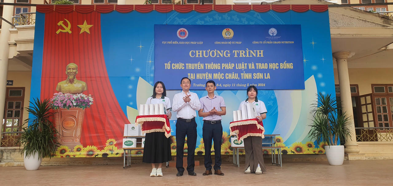 Đại diện nhà tài trợ Công ty Cổ phần Grand Nutrition cám ơn Công Đoàn, Cục Phổ biến Giáo dục Pháp luật thuộc Bộ Tư Pháp đã dành vinh dự cho Grand Nutrition có cơ hội tham gia chương trình từ thiện và tặng quà cho các em học sinh có hoàn cảnh khó khăn, vươn lên trong học tập tại Mộc Châu.