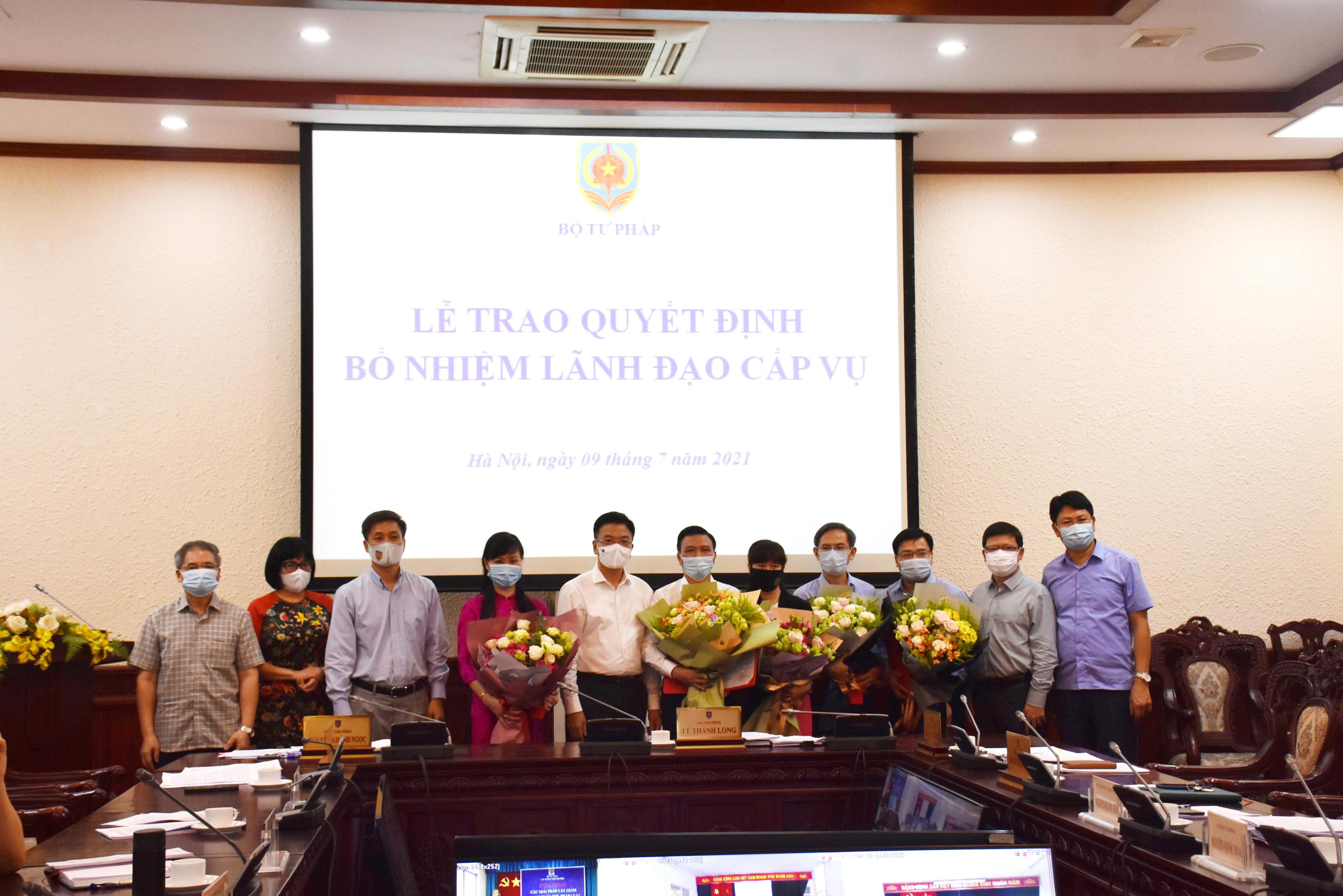 Lãnh đạo Bộ Tư pháp trao Quyết định bổ nhiệm lãnh đạo cấp Vụ cho 05 đồng chí.