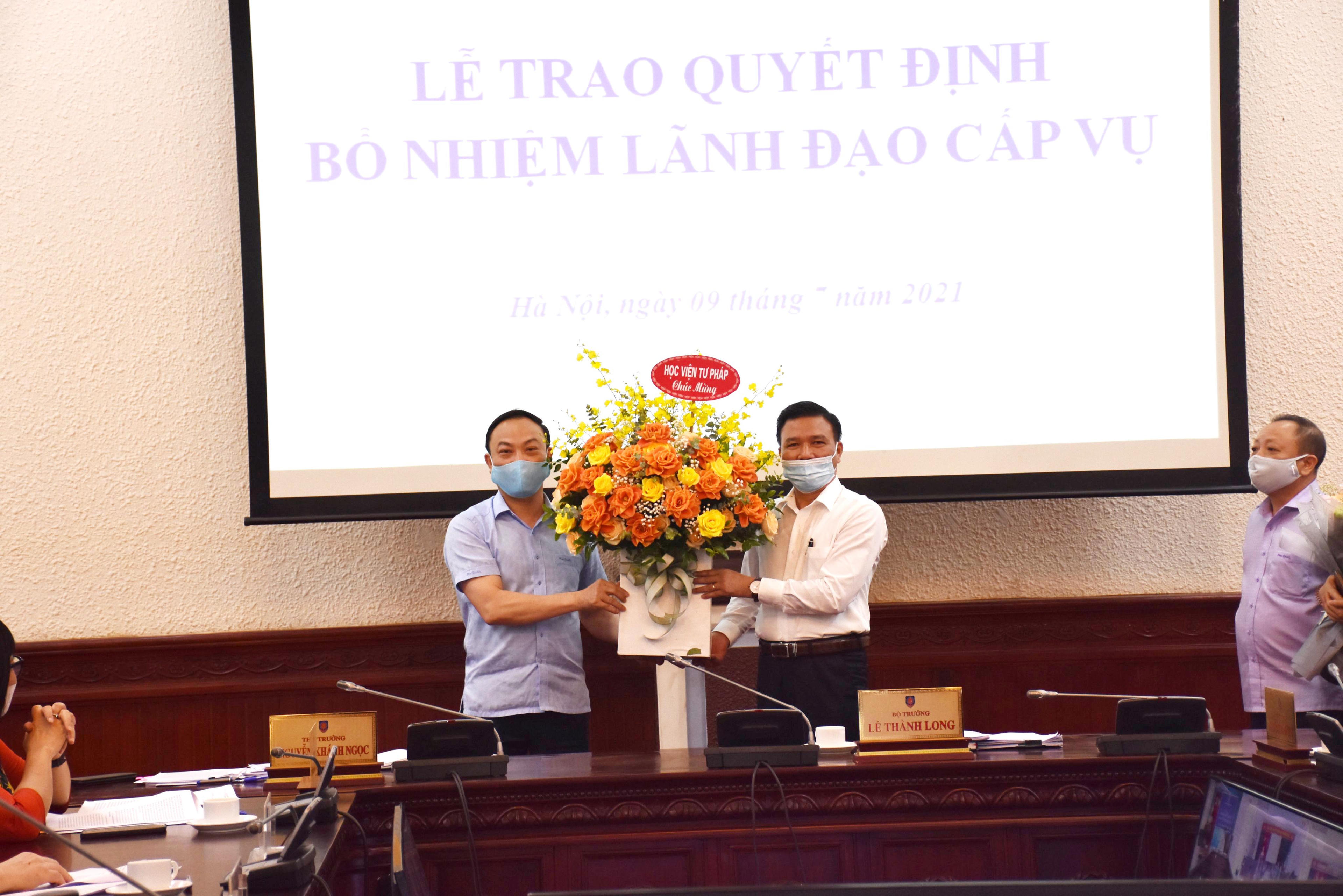 Trao Quyết định bổ nhiệm đồng chí Nguyễn Minh Hằng, Trưởng khoa Khoa Đào tạo Luật sư Học viện Tư pháp giữ chức Phó Giám đốc Học viện Tư pháp.