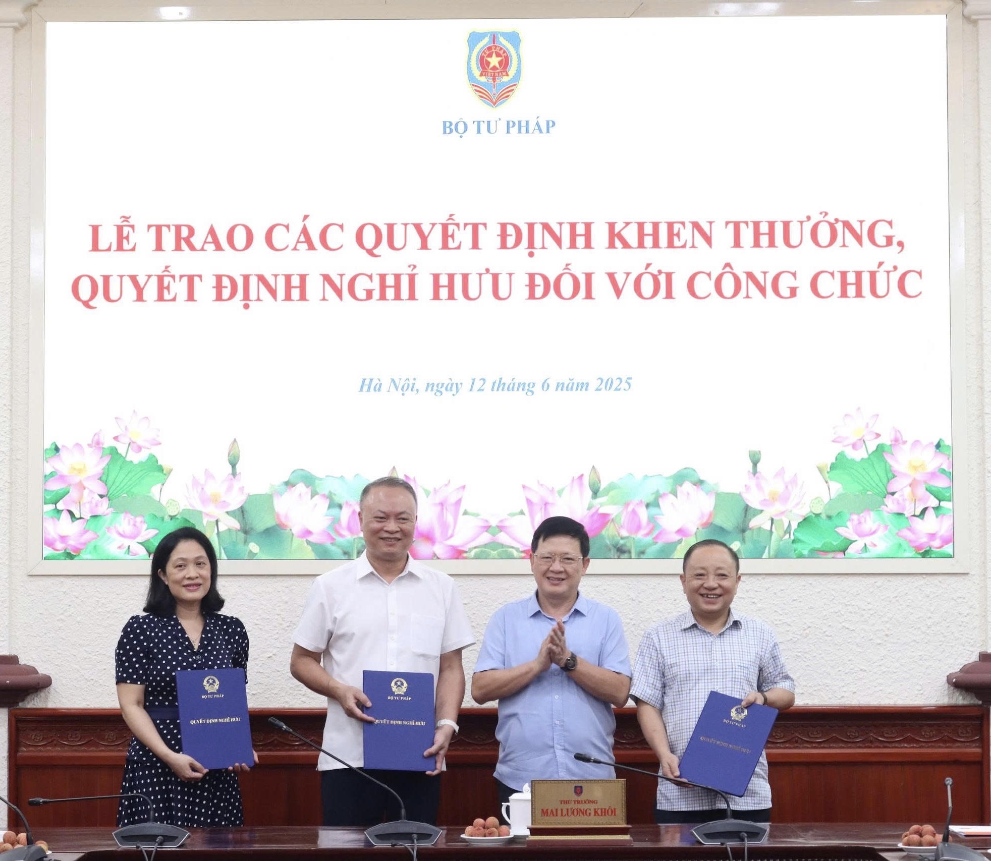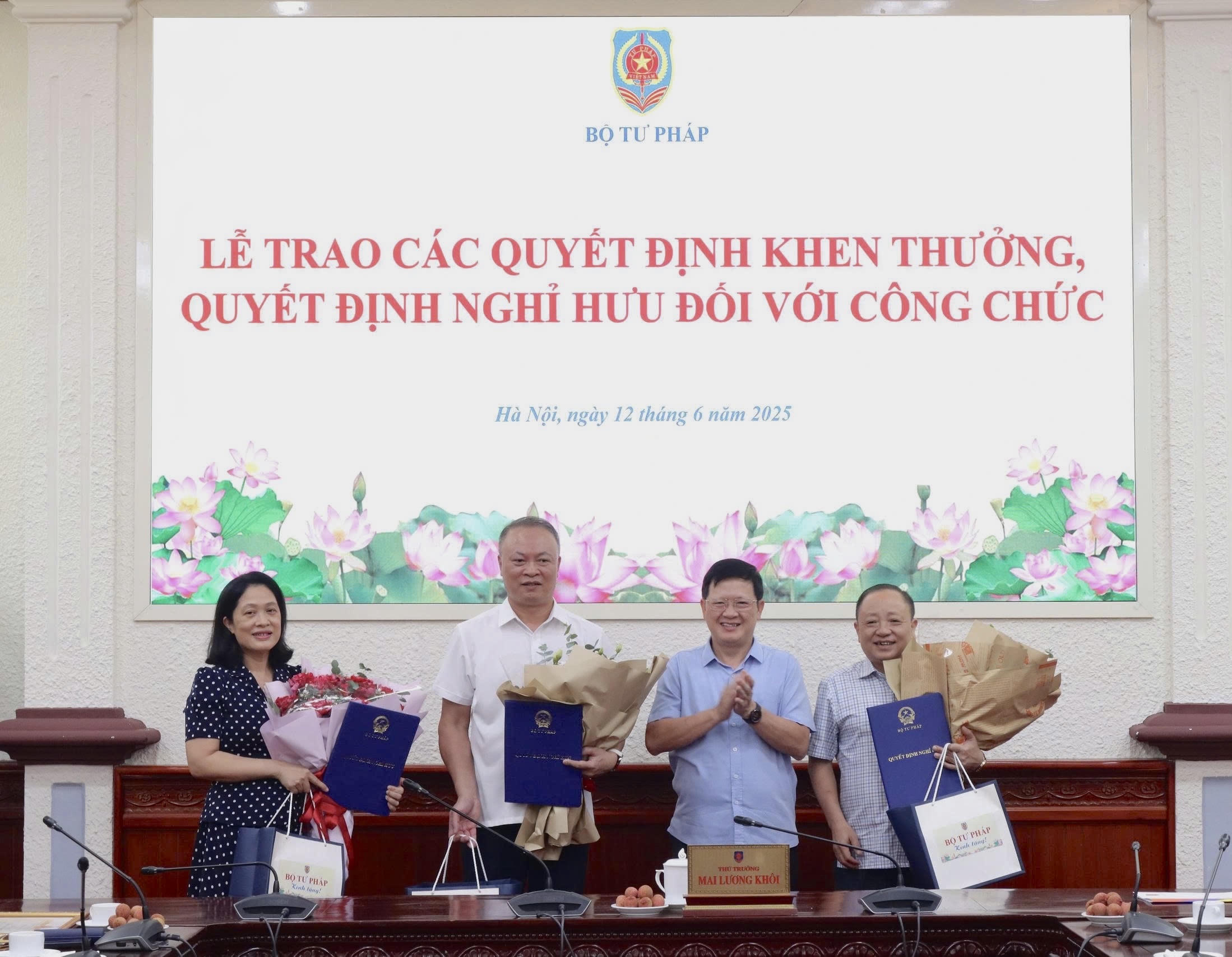 Bộ Tư pháp trao Quyết định khen thưởng, Quyết định nghỉ hưu cho các công chức