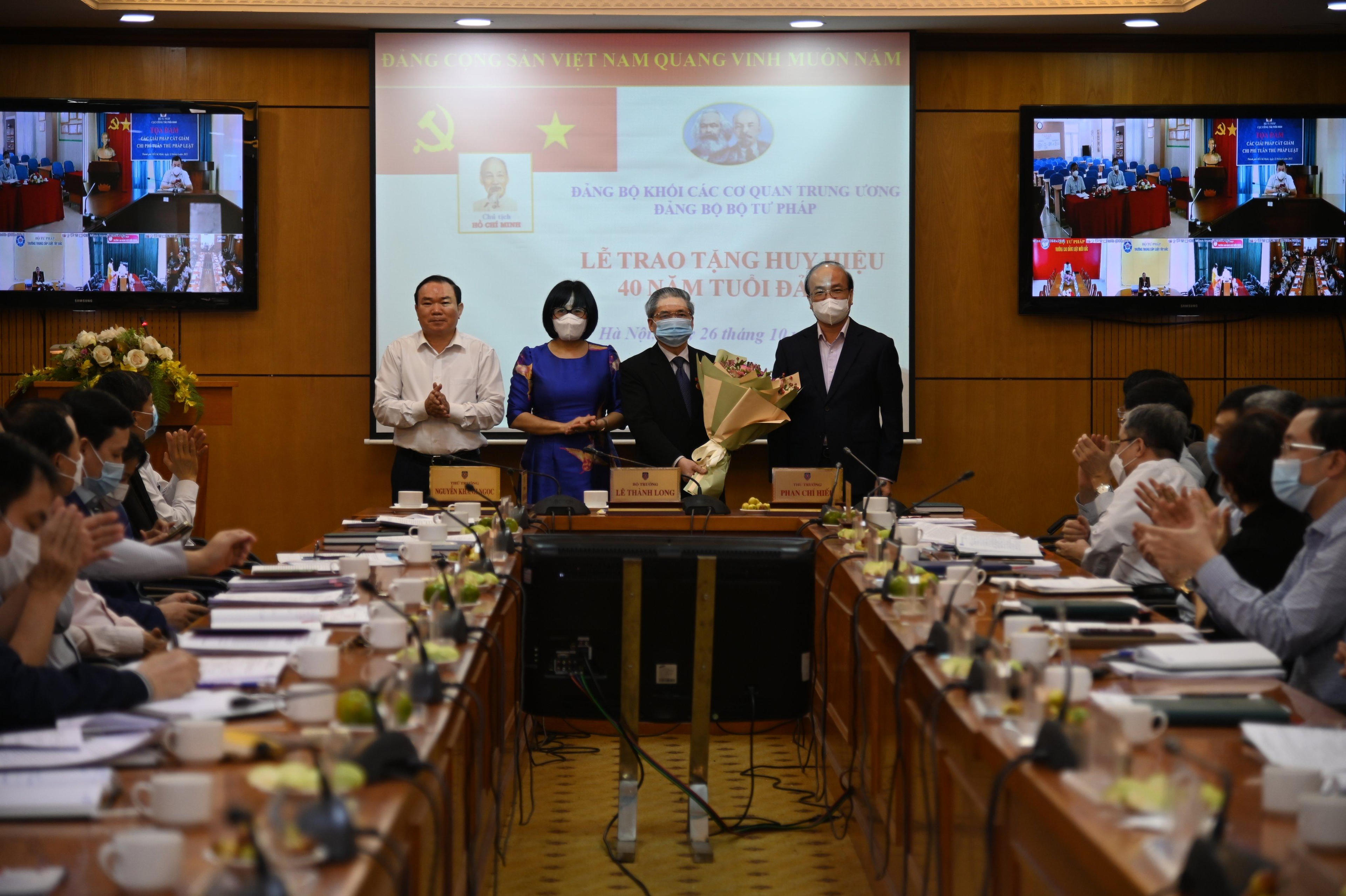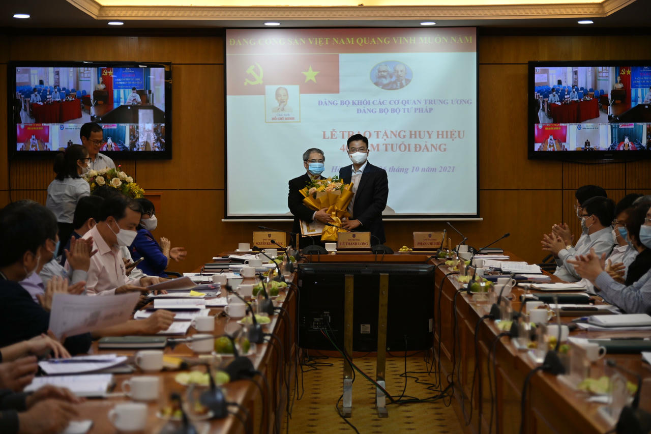 Nhân dịp này, Bộ Tư pháp đã trao huy hiệu 40 năm tuổi Đảng cho đồng chí Đinh Trung Tụng, chuyên gia cao cấp, nguyên Thứ trưởng Bộ Tư pháp.
