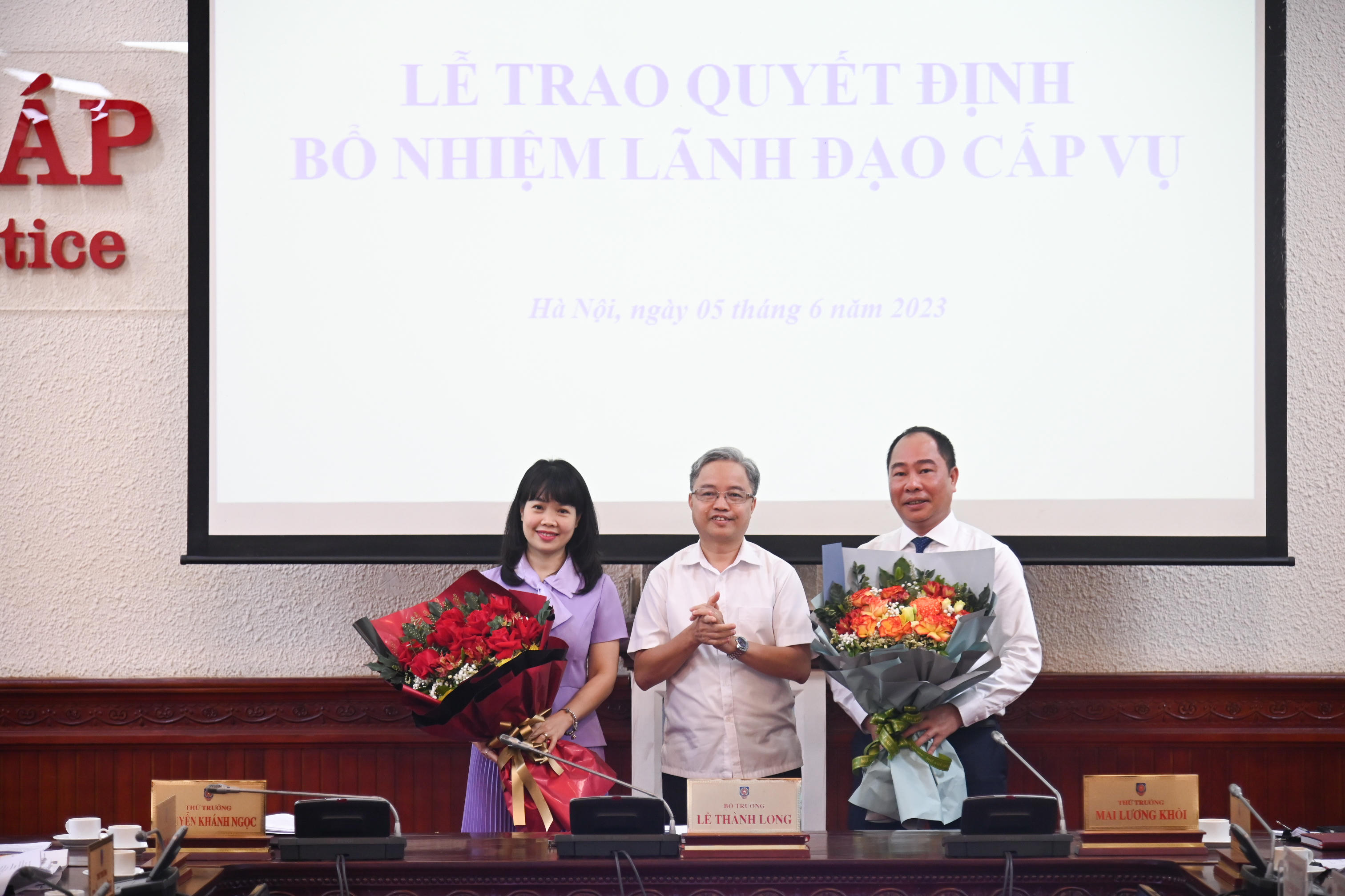 Cũng trong dịp này, Bộ trưởng Lê Thành Long đã trao Quyết định điều động, bổ nhiệm đồng chí Đào Thùy Linh, Giám đốc Trung tâm Thông tin pháp luật về Xử lý vi phạm hành chính và theo dõi thi hành pháp luật giữ chức vụ Phó Tổng Biên tập Tạp chí Dân chủ và Pháp luật; bổ nhiệm đồng chí Phan Đăng Kiên, Trưởng Phòng Quản lý con nuôi nước ngoài giữ chức vụ Phó Cục trưởng Cục Con nuôi.