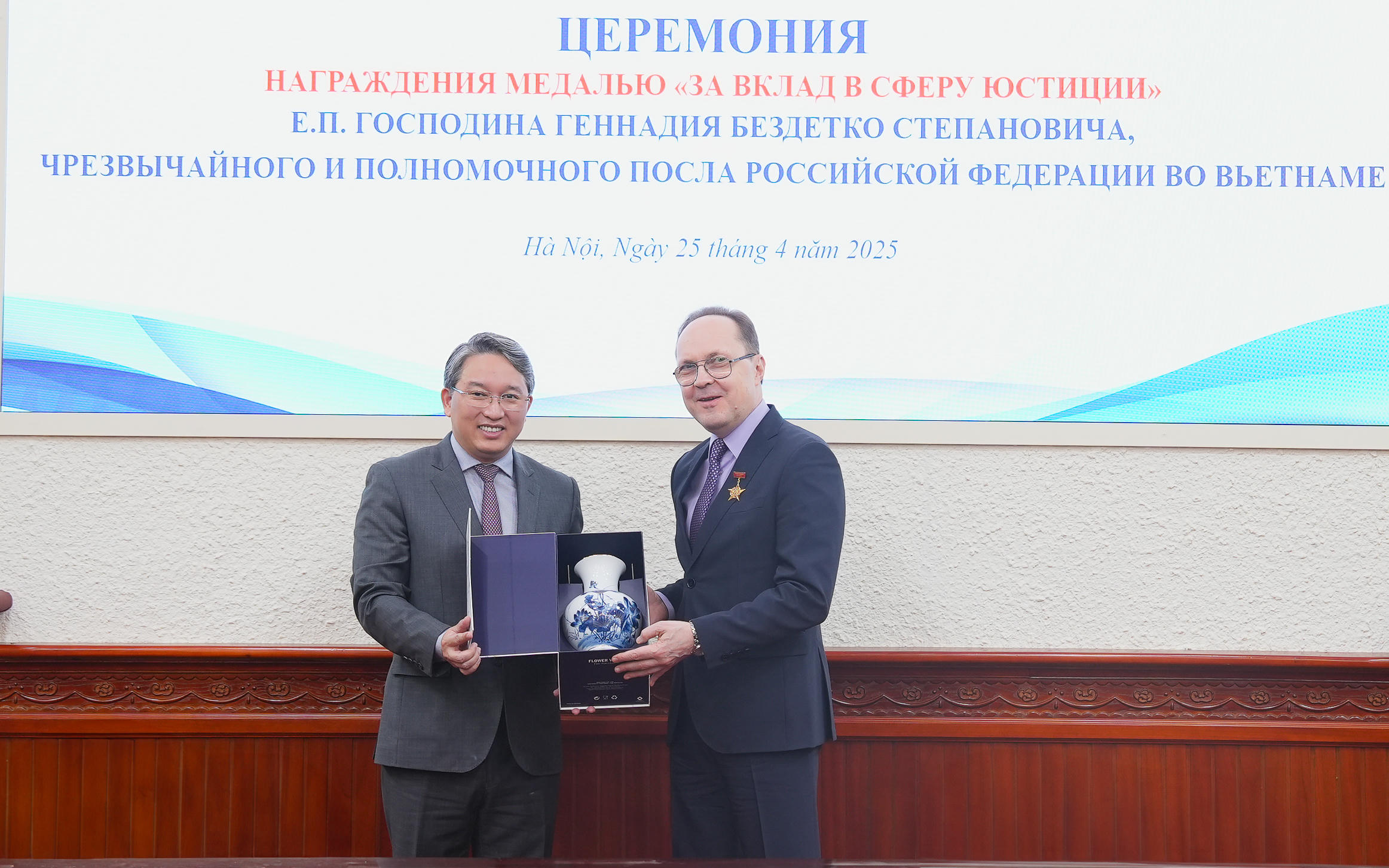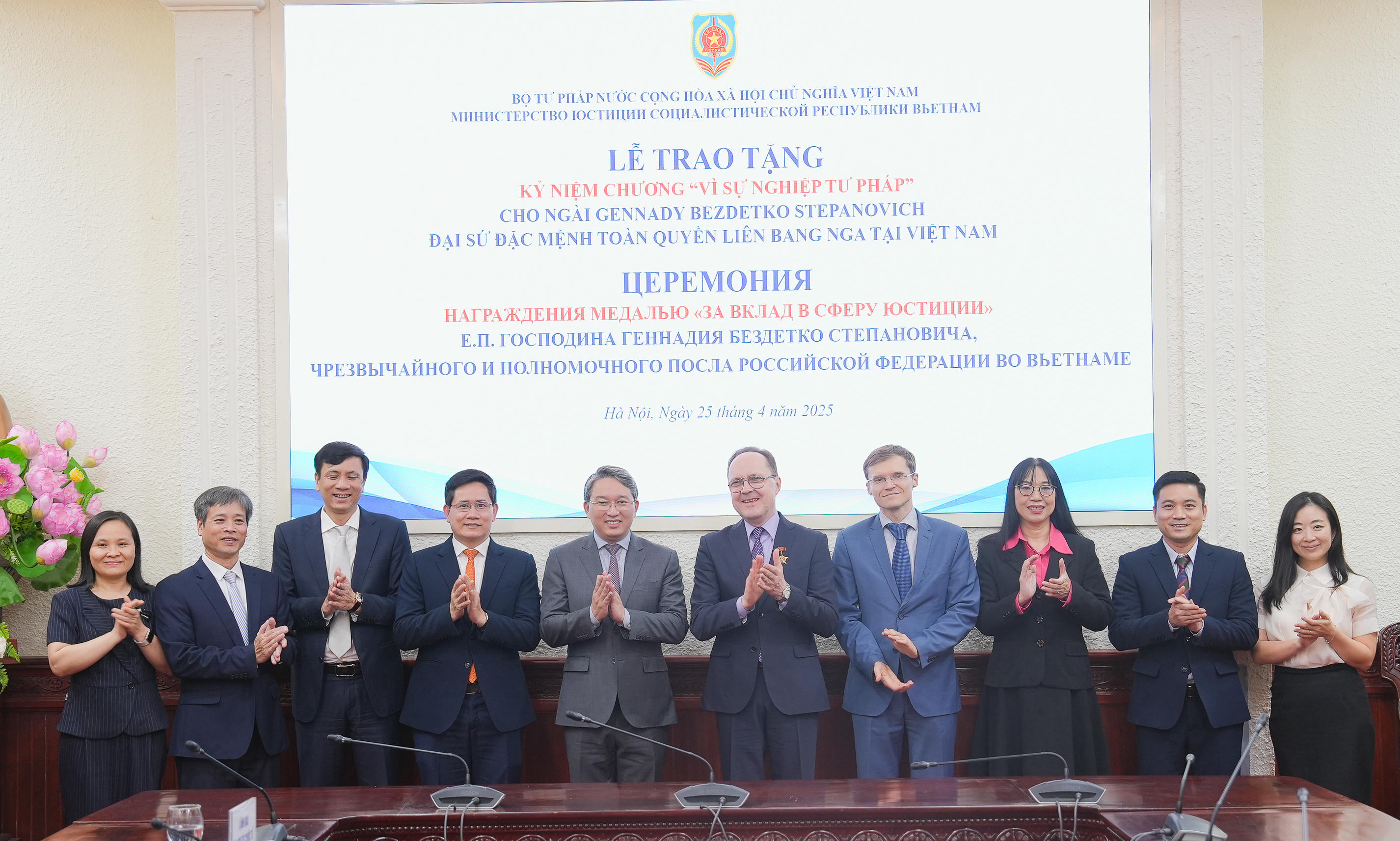 Bộ Tư pháp trao tặng Kỷ niệm chương “Vì sự nghiệp tư pháp” cho Đại sứ đặc mệnh toàn quyền Liên bang Nga tại Việt Nam
