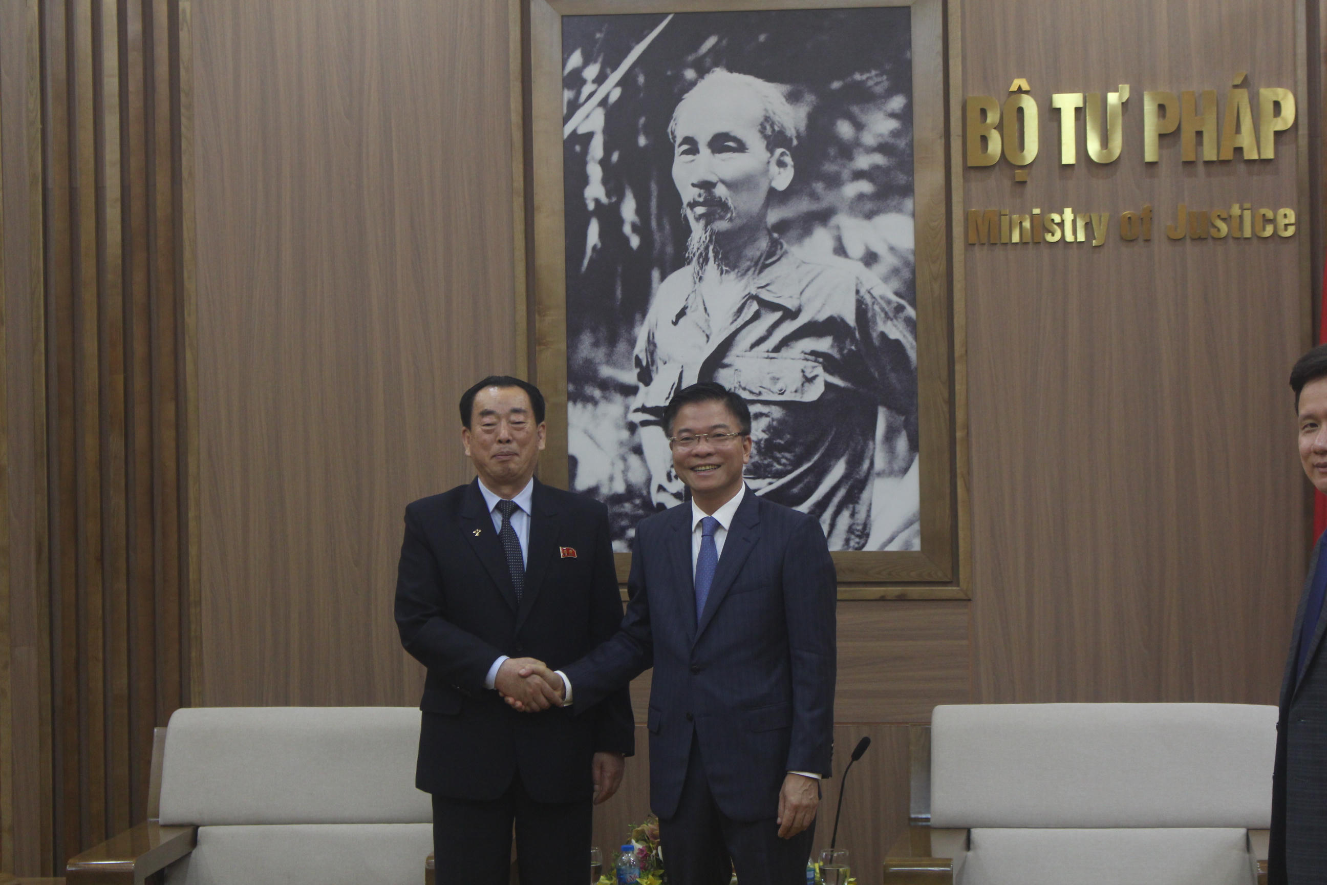 (PLVN) - Sáng 10/5, Bộ trưởng Bộ Tư pháp Lê Thành Long đã tiếp ông Kang Yun Sok, Chánh án Tòa án Trung ương Triều Tiên đến thăm và làm việc tại Việt Nam. Tham dự buổi tiếp có Phó Chánh án Tòa án nhân dân tối cao Nguyễn Thúy Hiền và lãnh đạo một số đơn vị thuộc Bộ Tư pháp.