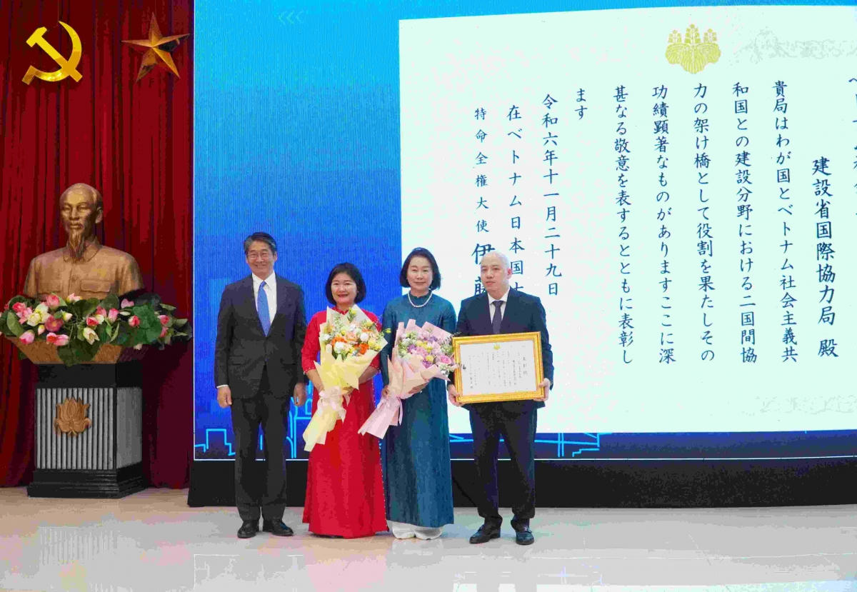 Đại sứ đặc mệnh toàn quyền Nhật Bản tại Việt Nam Ito Naoki trao tặng Bằng khen của Đại sứ quán Nhật Bản tại Việt Nam cho Vụ Hợp tác quốc tế.