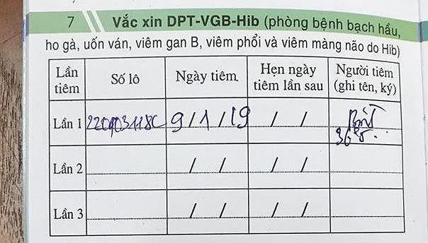 Sau đó bé Y. được tiêm vắc xin phối hợp 5 trong 1 phòng bệnh bạch hầu - ho gà- uốn ván - viêm gan B - Hib (vắc xin ComBE Five) mũi 1 và uống vaccine phòng bệnh bại liệt lần 1.