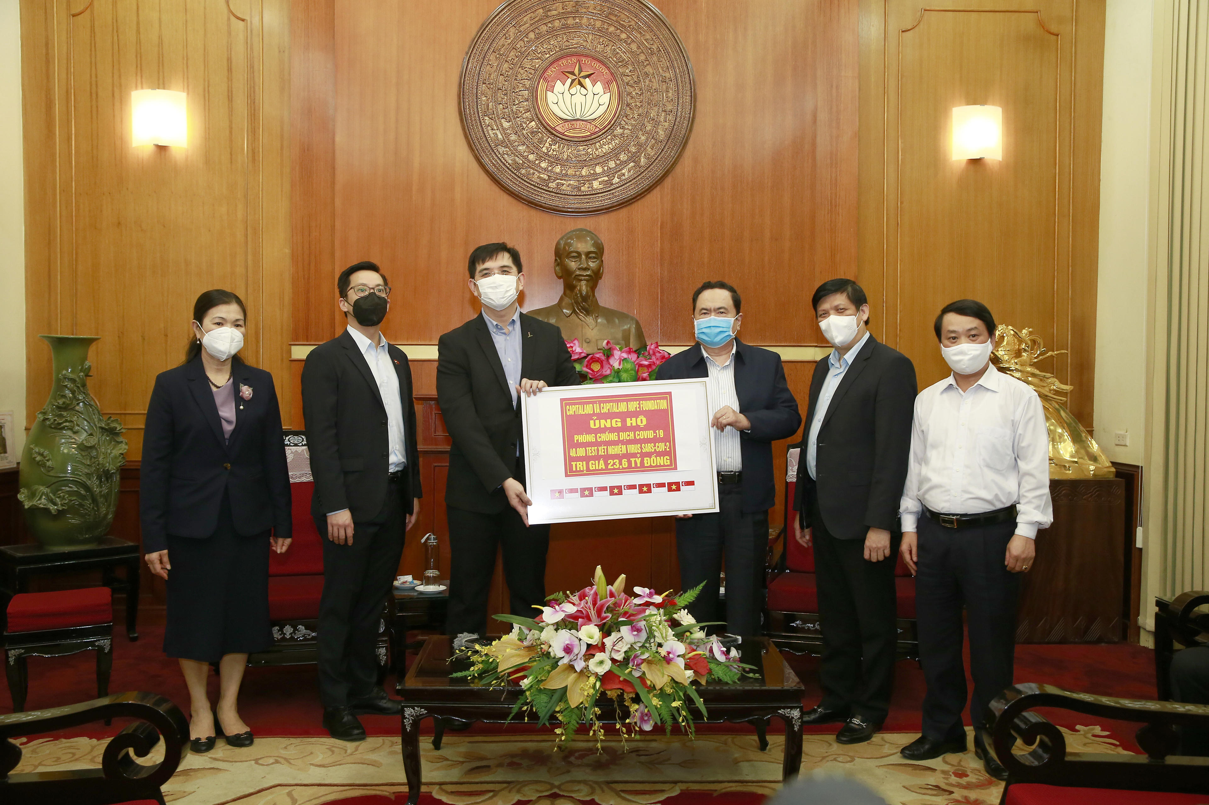 Thứ trưởng thường trực Nguyễn Thanh Long cho biết, hưởng ứng lời kêu gọi các tổ chức, cá nhân cùng chung tay đẩy lùi dịch bệnh SARS-CoV-2 của Thủ tướng chính phủ Nguyễn Xuân Phúc, Công ty CapitaLand Việt Nam đã tài trợ bằng hiện vật các thiết bị và hóa chất xét nghiệm virus SARS-CoV-2 với tổng giá trị USD 1.000.000 (Một triệu đô la Mỹ) tương đương 40.000 test xét nghiệm virus SARS-CoV-2.