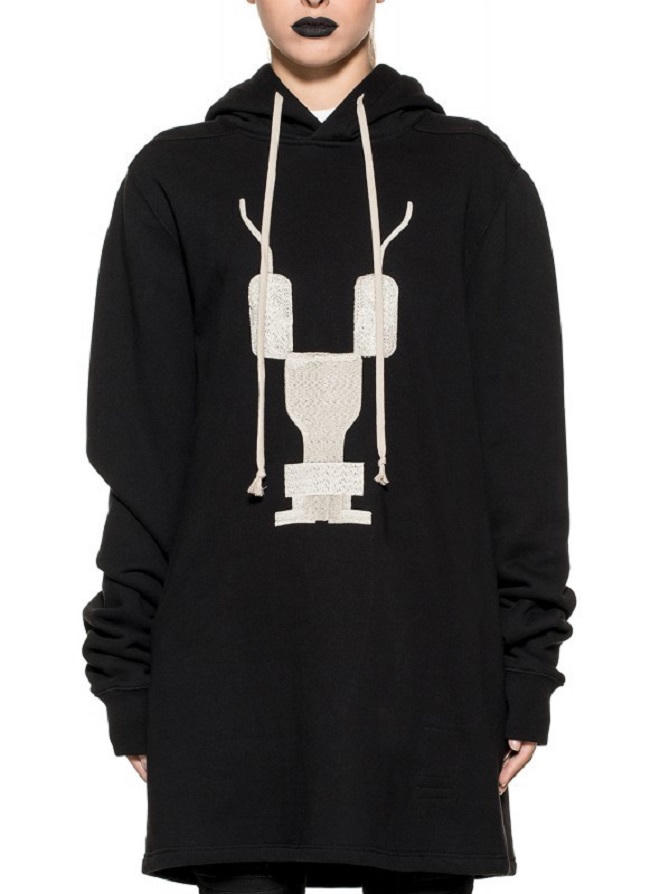 Theo chia sẻ, chiếc áo hoodie cô bạn diện đến từ nhãn hàng Rick Owens với hình ảnh thêu trừu tượng sắc trắng tương phản trên nền vải đen. Thiết kế có giá 376 eur (hơn 10 triệu đồng).