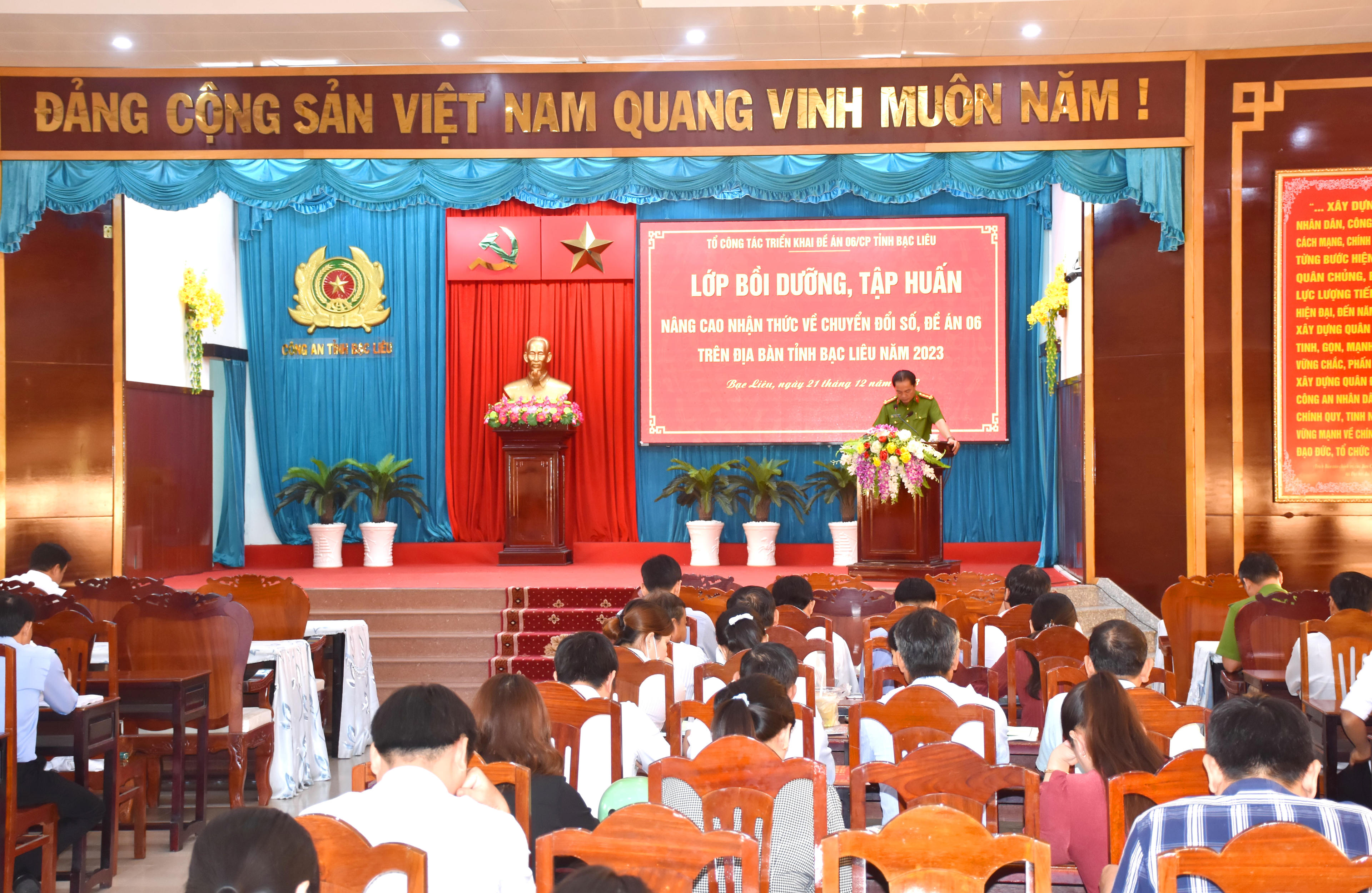 (PLVN) - Ngày 21/12, Tổ công tác triển khai Đề án 06/CP tỉnh Bạc Liêu tổ chức Lớp bồi dưỡng, tập huấn nâng cao nhận thức về chuyển đổi số và Đề án 06/CP trên địa bàn tỉnh năm 2023. Đại tá Bùi Xuân Khởi - Phó Giám đốc Công an tỉnh, Tổ phó Tổ công tác triển khai Đề án 06/CP tỉnh dự và chỉ đạo lớp bồi dưỡng.