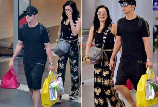 Chung Lệ Đề và ông xã Trương Luân Thạc cùng nhau xuất hiện tại một trung tâm thương mại, cặp đôi dường như vừa có một chuyến mua sắm bội thu. Trong khi ông chồng tay xách nách mang, Lệ Đề đi sau, cười nói vui vẻ. Nữ diễn viên Mẹ kế mặc áo hai dây bó, quần họa tiết hoa điệu đà.