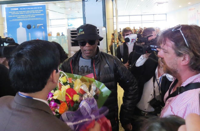 Diễn viên Jackson Samuel Leroy được đón tiếp tại sân bay. Ảnh: T.N.Phong
