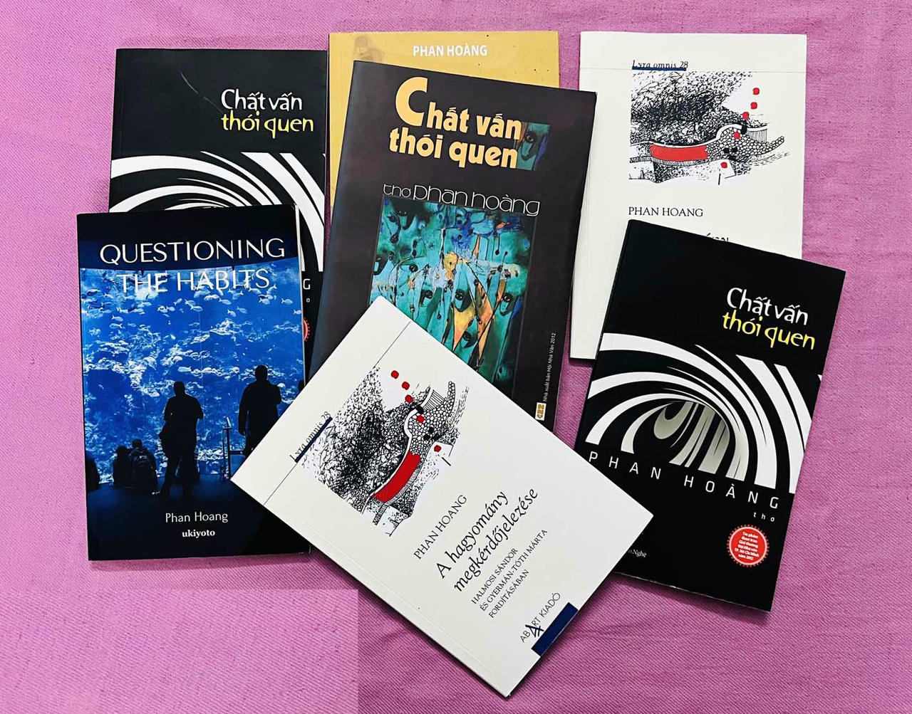 Tập thơ “Chất vấn thói quen” của Phan Hoàng bằng các bản tiếng Việt, tiếng Anh và tiếng Hungary |
