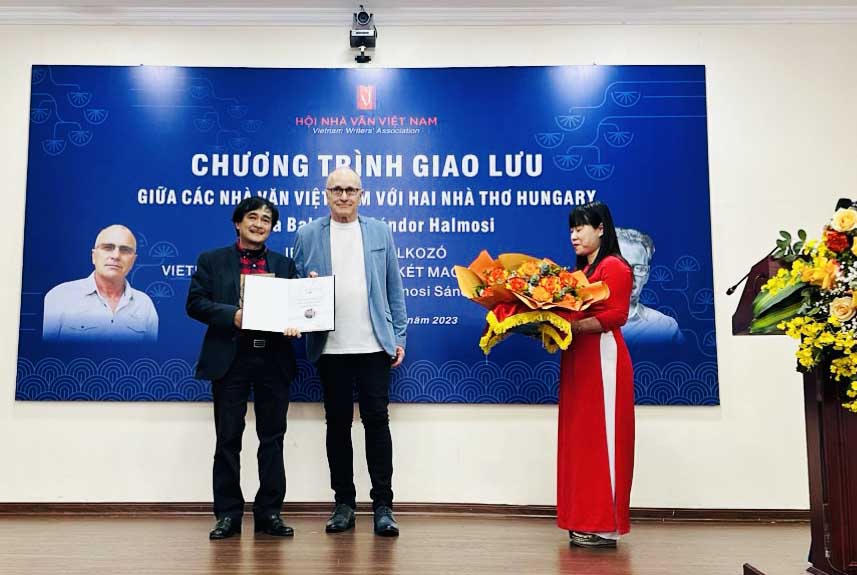 Nhà thơ Phan Hoàng nhận Giải thưởng Nghệ thuật Danube năm 2023 của Hungary do nhà thơ, dịch giả Attila F Balázs – Chủ tịch Hội Văn học nghệ thuật Danube trao tại Hà Nội ngày 4.2.2023 |