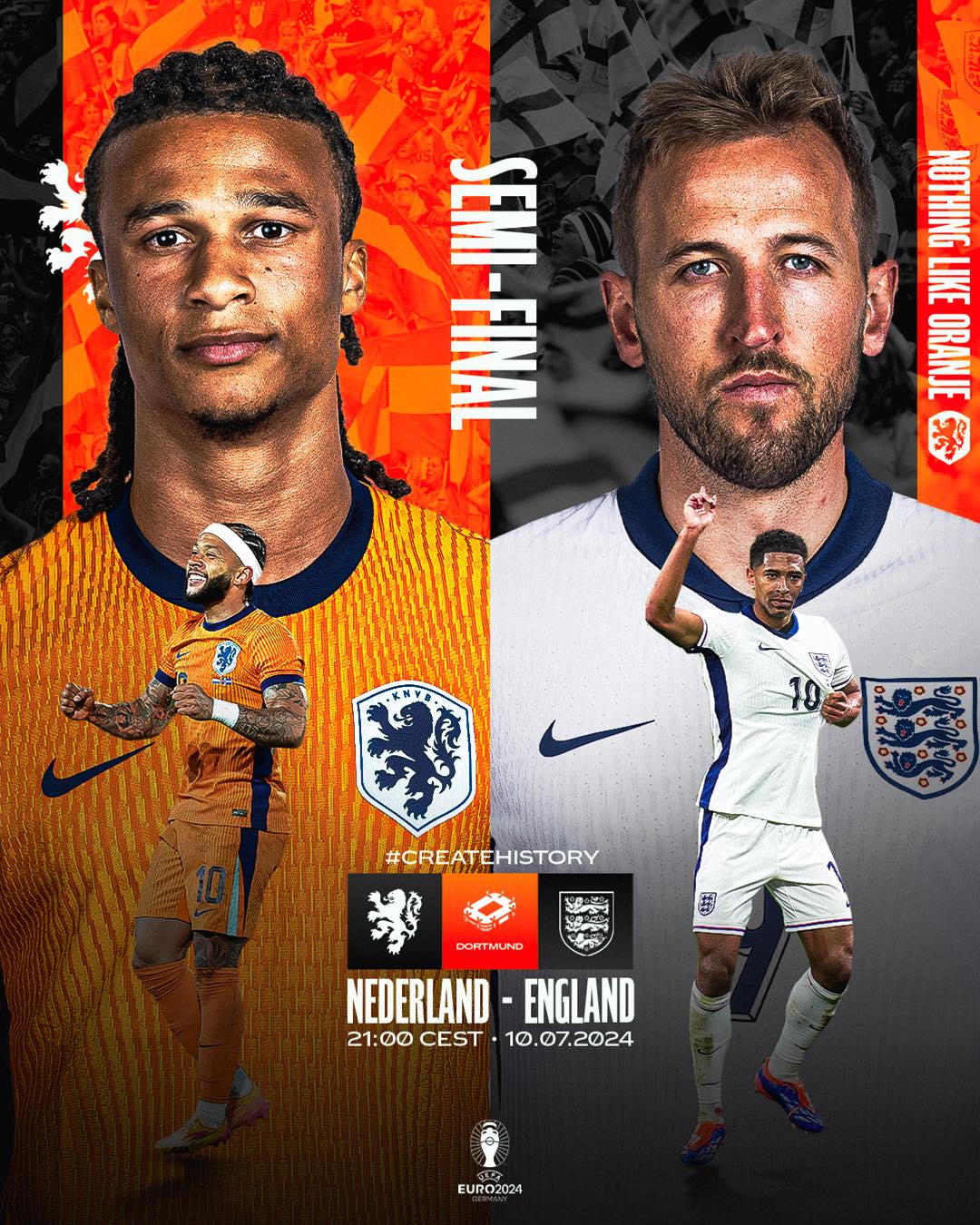 Trận bán kết 2: Hà Lan gặp Anh lúc 02h00 ngày 11/7.