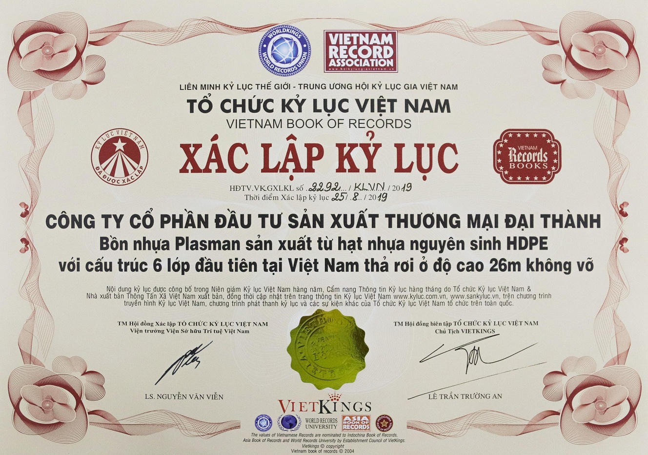 Kỷ lục Việt Nam mà sản phẩm Siêu bồn nhựa Plasman vừa xác lập được tiếp tục khẳng định cam kết của Tập đoàn Tân Á Đại Thành về một dòng sản phẩm siêu bền, thích ứng được với các điều kiện khắc nghiệt của thời tiết.