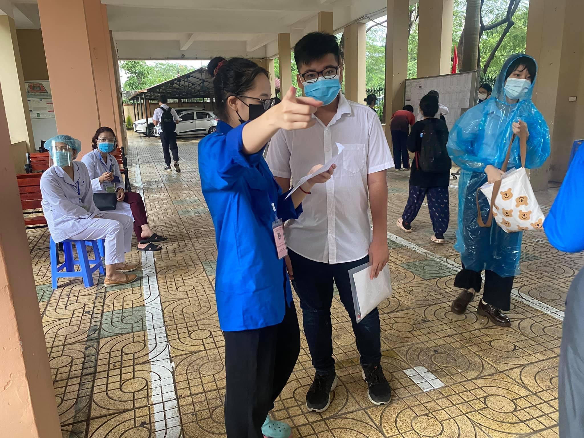 Trong màu áo xanh ấy, tình nguyện viên đều cố gắng hết sức đảm bảo an toàn trong công tác phòng chống dịch cho thí sinh |