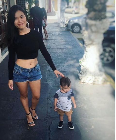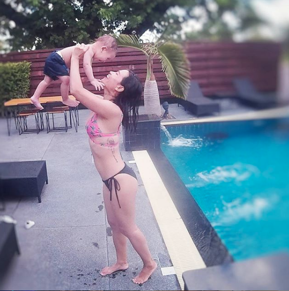 Bà mẹ một con vẫn luôn rạng rỡ tươi tắn dù bận rộn chăm con nhỏ.